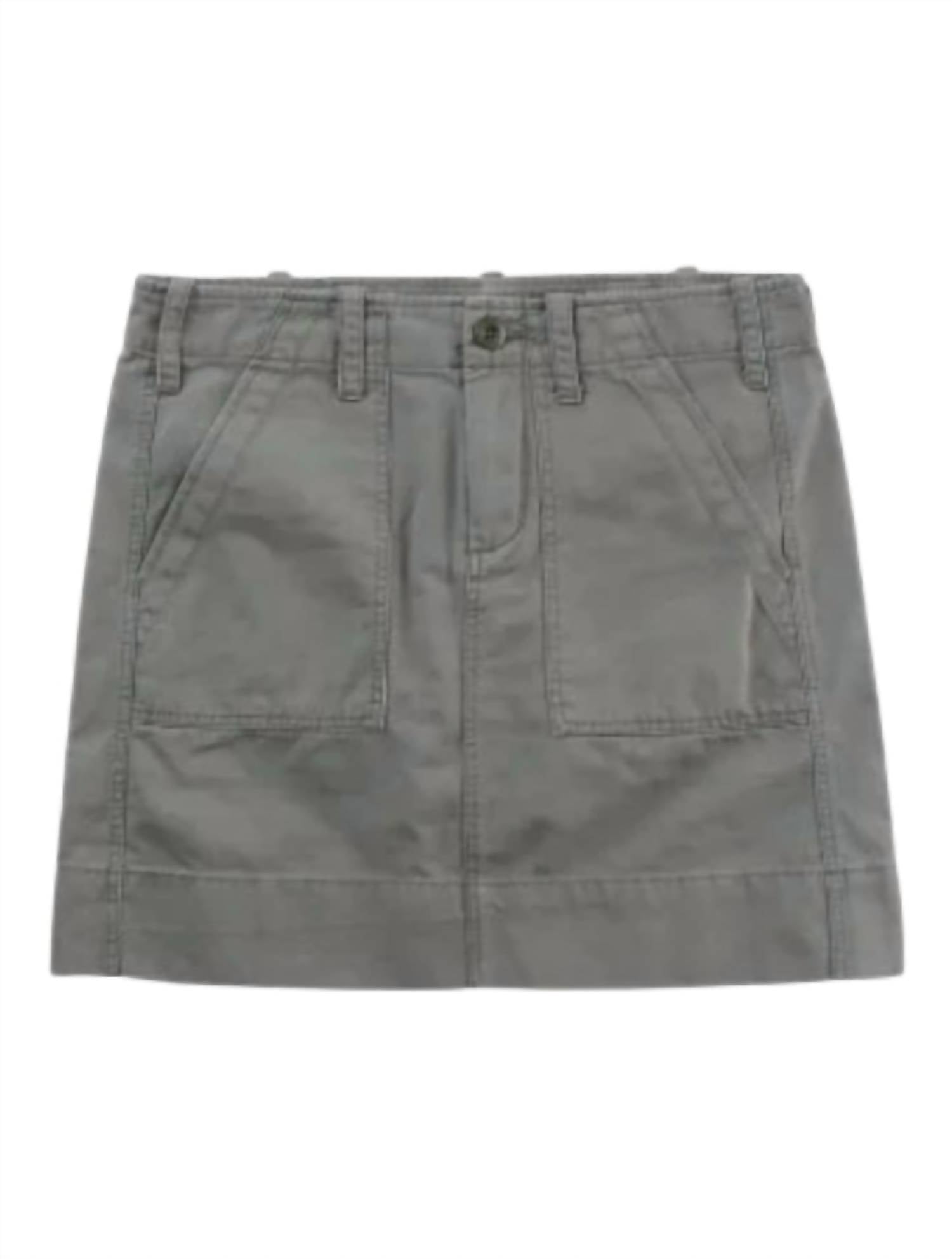 The perfect mini skirt does exist. Discover the Women's Jane Mini Skirt by G1, offering a trendy utilitarian touch in a solid Fatigue color. This skirt, crafted from 100% cotton dobby, features a button closure on the waistband and zip fly, finished with a frayed bottom hem. Its practical design includes 2 slash patch pockets on the front and 2 back patch pockets with flaps, with a length of 15.75" at the center front. Suitable for summer vacations, it's easy to maintain with machine wash care.