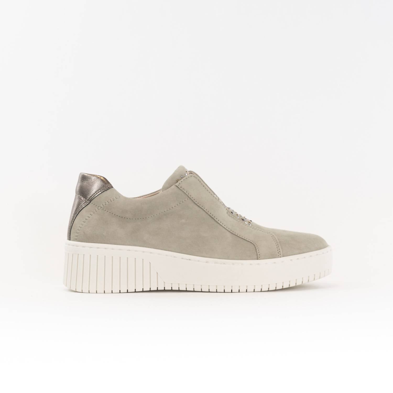 Cute, functional, and comfortable. These sneakers check all the boxes. Step into unparalleled comfort and style with the Gabor Women's Sneakers in Reed Cream. These slip-on walking shoes feature a luxurious suede upper combined with a trendy European design, perfect for staying fashion-forward this spring. Crafted with a platform heel and an almond toe shape, these sneakers are ideal for vacation-ready streetwear. Enjoy a chic yet comfortable footprint that aligns with your fashionable lifestyle.