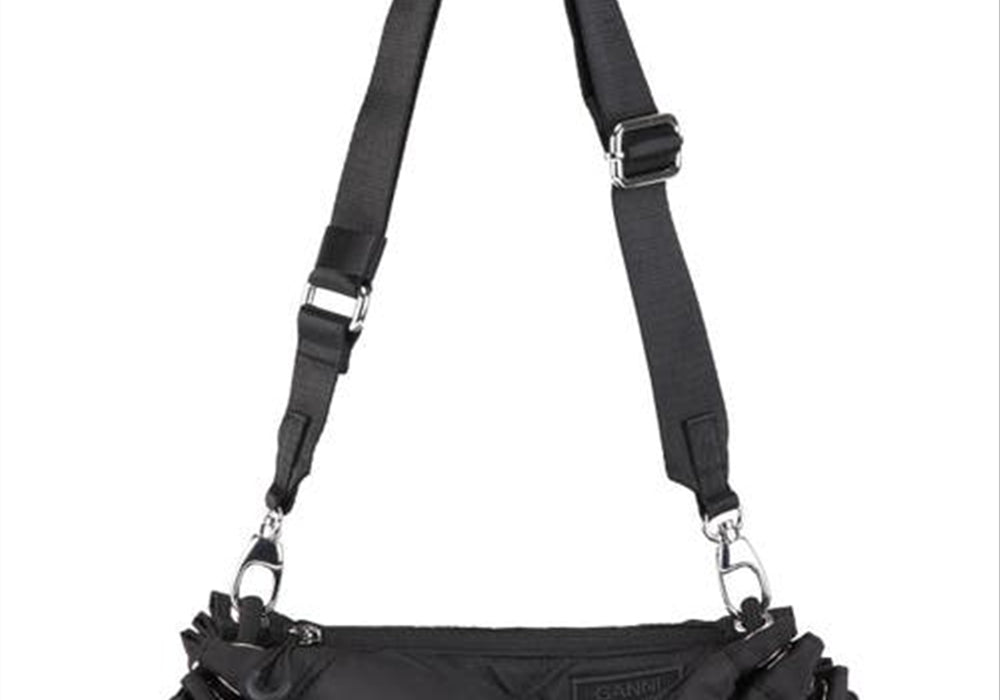 Ganni Small Quilted Recycled Polyester Duffle Bag Black