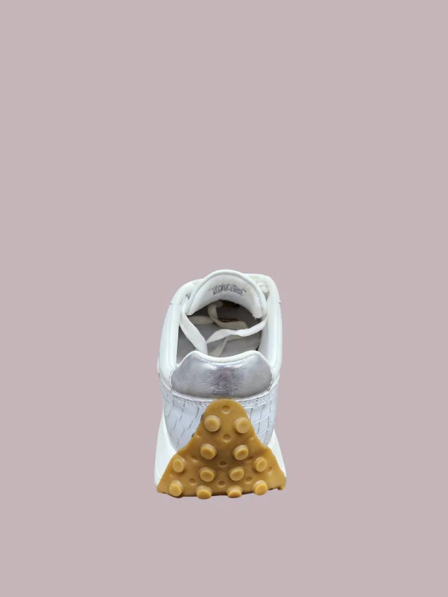 Get your daily steps in with these adorable sneakers. Experience the perfect mix of sporty and chic, crafted in a fashionable White Croc finish. Feature a leather upper and lining, complemented by a lug-style sole and cushioned heel cup with a silver accent, ideal for all-day comfort. Designed with a functional 4cm wedge heel set on a 2cm platform, offer a casual yet stylish look suitable for various occasions.