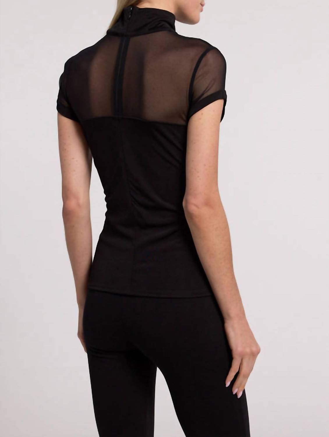 A timeless blouse that will never go out of style. Introducing the Avril Mesh Combo Top by Generation Love, a modern classic in striking black. This top features short sleeves and a sophisticated turtleneck, with a textured viscose composition and a 23" length for a sleek silhouette. Care for this top by hand washing and hanging it to dry or opting for professional dry cleaning for best results.