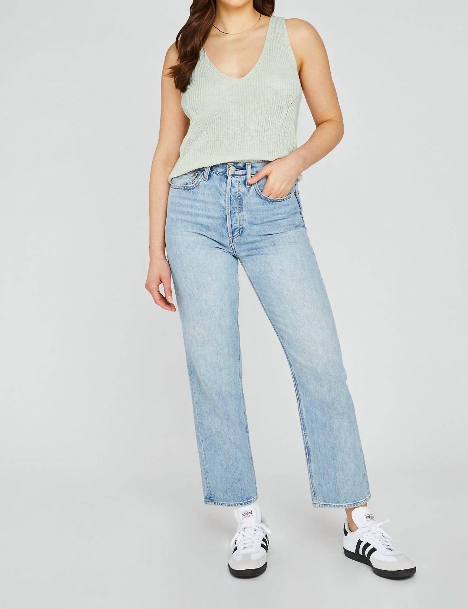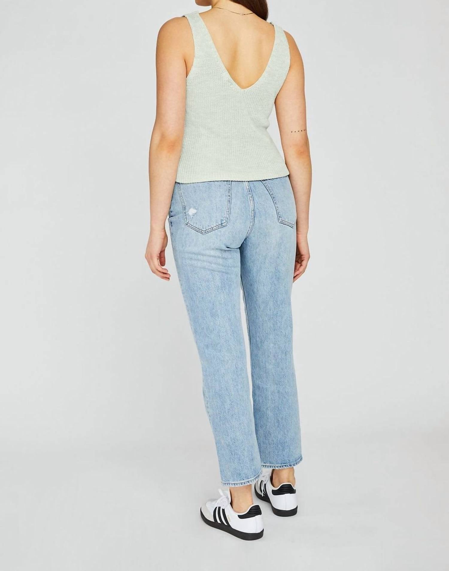 The perfect tank top for those warmer weather seasons.Soft Knit. V-Neckline. Side Slits. 100% Polyester. Hand Wash Cold