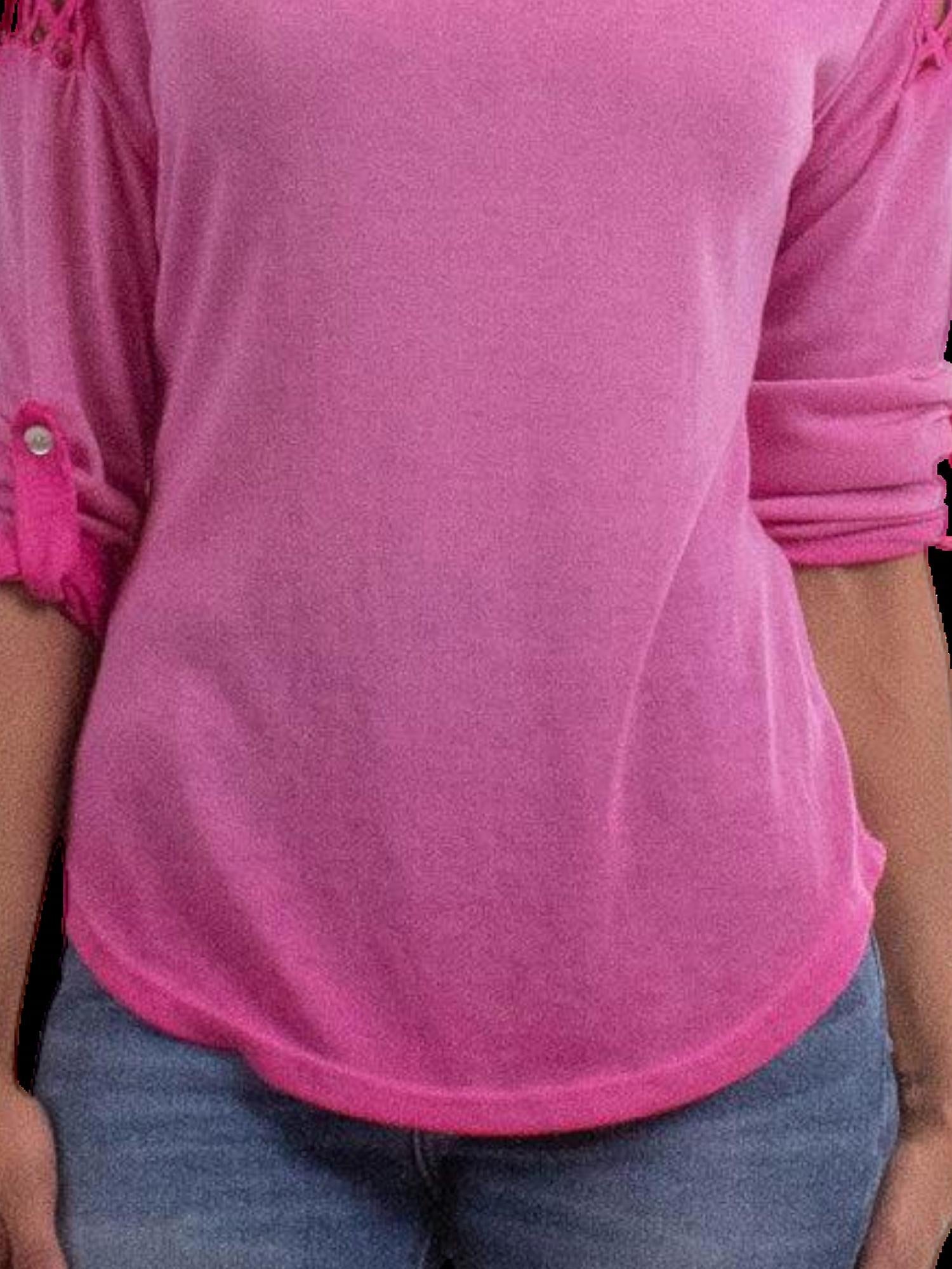 Experience the perfect blend of comfort and style with this trendy crew neck sweater, designed to effortlessly elevate your wardrobe. Pair it with your favorite denim and loafers for the perfect look. Discover the Alice Knit Sweater Top by GIGI MODA, a stylish choice in hot pink designed to elevate your wardrobe. This solid piece features three-quarter sleeves with buttons for an adjustable roll-up option and a trendy cage shoulder embroidery. Crafted from a blend of 95% viscose and 5% elastane, this pull-on top is both soft and comfortable, made in Italy. Care for this fabulous sweater by hand washing and laying flat to dry. The one-size design fits small and medium sizes comfortably, perfect for travel and minimalist style during the fall season.