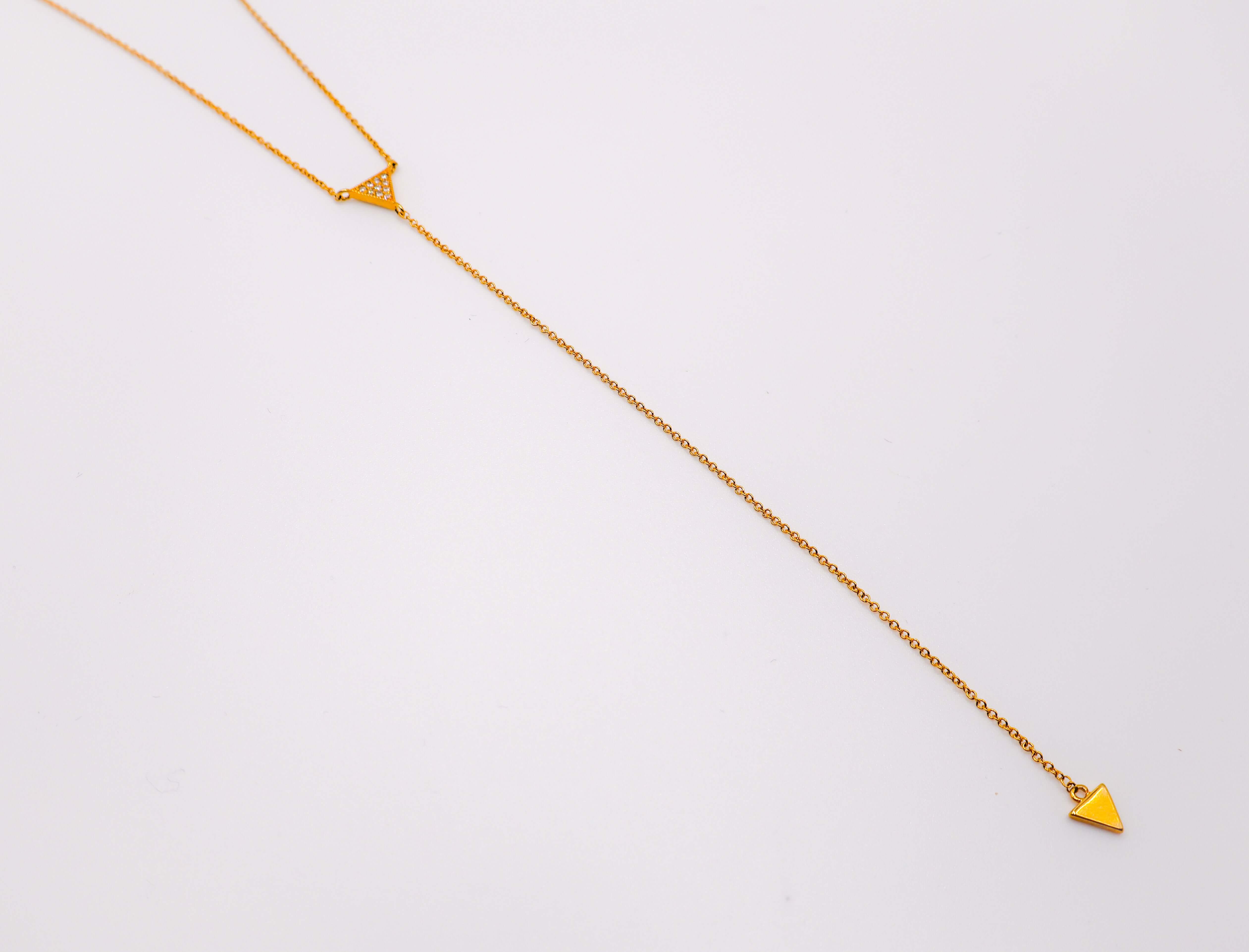 Despite its delicate appearance, this lightweight gold necklace is designed for durability, making it perfect for everyday wear or special occasions. Versatile and chic, the Gilded Triangle Necklace complements a wide range of outfits and personal styles, adding a refined touch of minimalist jewelry to your collection. Elevate your look with this exquisite piece that combines timeless beauty and modern allure in one elegant design.