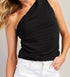 Discover the chic elegance of the One Shoulder Sleeveless Top by GLAM, a black textured masterpiece that exudes modern sophistication. Tailored with a one shoulder neckline, this blouse is perfect for adding a contemporary edge to your ensemble. This women's tank top, designed without pockets, features a pull-on closure for easy wearability.