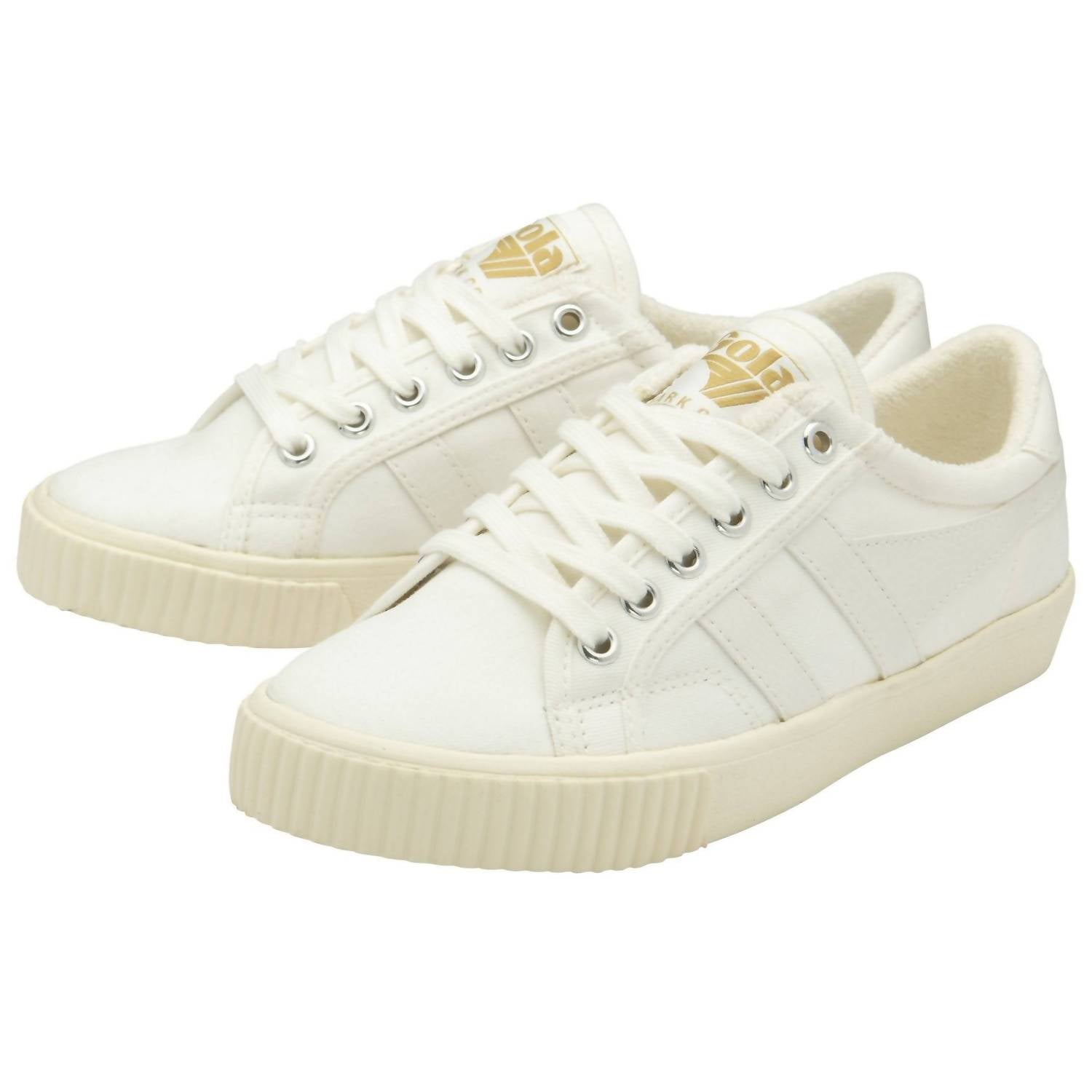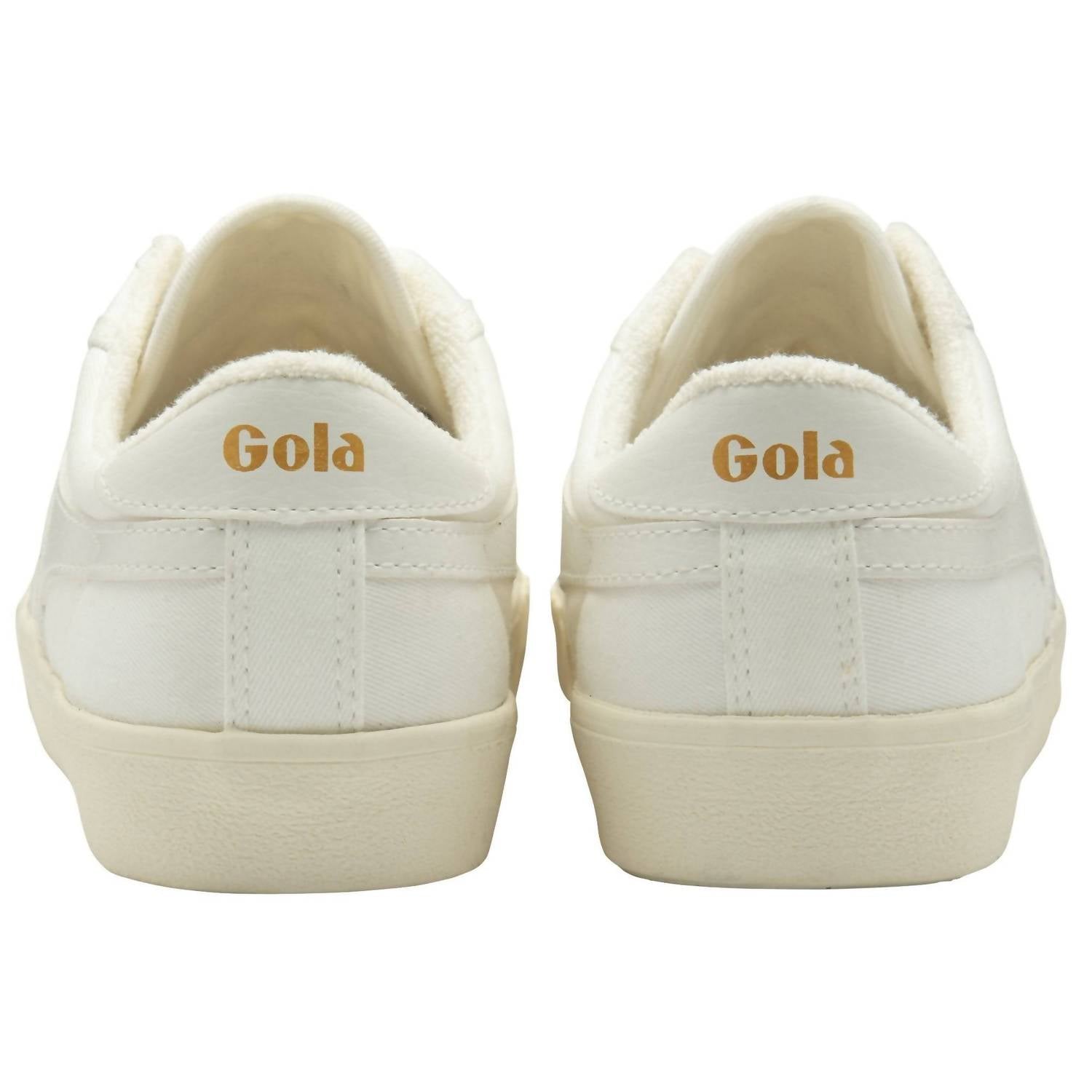 When fashion and function come together seamlessly. Step into a piece of history with the Women's Tennis Mark Cox Plimsolls by Gola, inspired by the original 1975 design famously worn by tennis legend Mark Cox. These off-white sneakers capture the essence of Gola’s heritage with their retro tennis-inspired style, featuring a subtle off-white wingflash and gold branding on the tongue and heel-turn. Ideal for summer streetwear or a stylish back-to-school look, these vegan-registered plimsolls combine nostalgia with modern vegan principles. The flat heel and round toe shape ensure comfort for all-day wear.