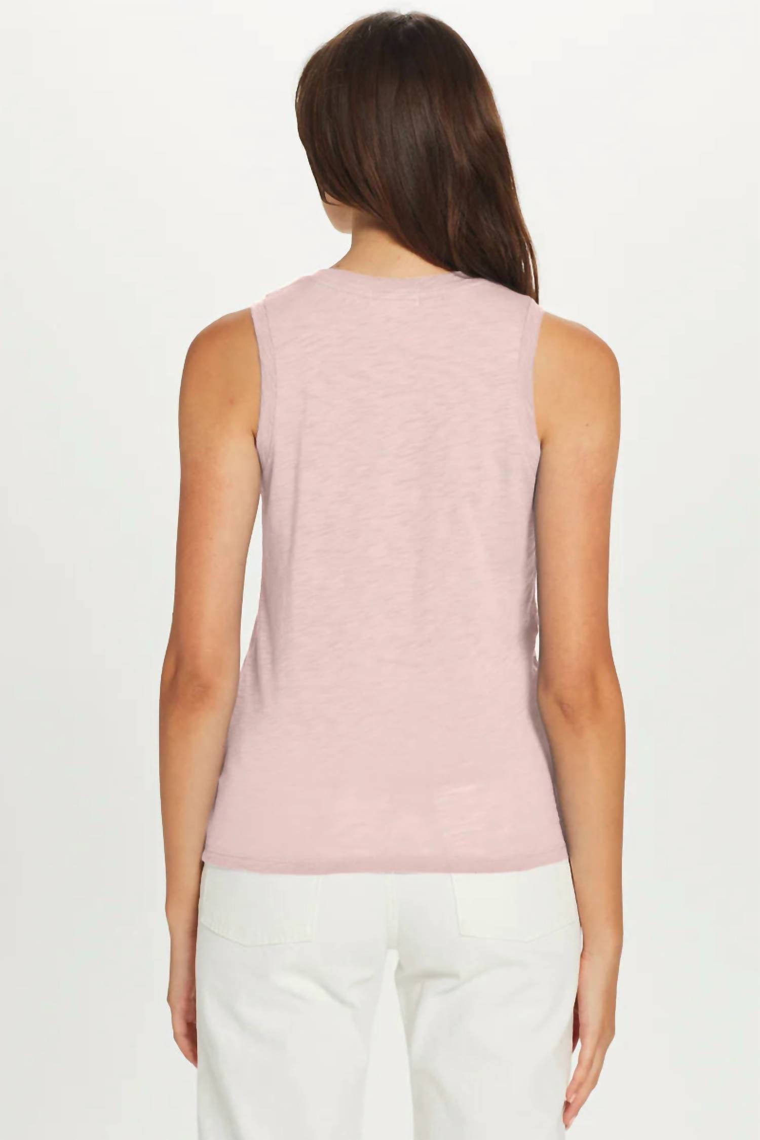 The perfect tank top for those warmer weather seasons. Introducing the GOLDIE Women's Crew Tank Top, a sleek and sultry addition to your summer wardrobe in a dreamy Rose Quartz. Featuring a sleeveless design with cutaway shoulders, this slim-fitting tank is crafted from 100% Peruvian Pima cotton for a light, silky texture. Made in Peru with a flattering body length of 23.5 inches, it offers a minimalist, solid pattern, ready for effortless vacation styling. Closure: Pull-on. Care: Machine wash.