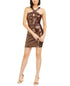 Approx. 26-14" long from center back neck to hem. Length is based on size 4 and varies 1/2" between sizes|Halter neckline with keyhole; Sheath silhouette|Hidden back zipper with hook-and-eye closure|Allover sequins|IMPORTANT NOTE: This item arrives with a return tag attached and instructions for removal. Once the tag is removed from the dress, this item cannot be returned.