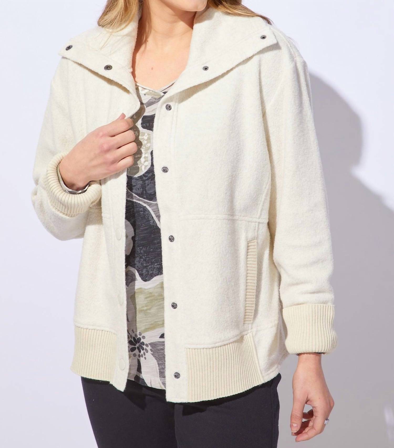 A casual yet cool jacket that every closset needs. Experience the ultimate blend of cozy and chic with the Heather Fleece Fireside Snap Jacket by Habitat. This ivory casual jacket is crafted from a cotton/polyester fleece, offering a long-sleeve design with a snap closure and an oversized collar. With a relaxed fit, it measures 26.5 inches in front length for size small, featuring built-in pockets for convenience. Easy to care for, machine wash cold inside out with like colors and tumble dry for effortless maintenance.