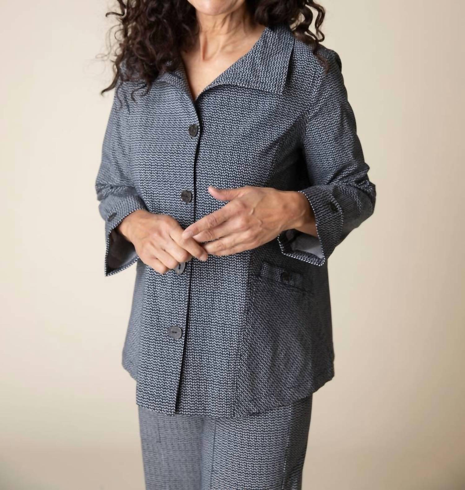 Cute, casual, and comfortable. This jacket is a must have. The Power Stretch Modern Geo Easy Swing Jacket by Habitat is an elegant choice for your spring dinner parties. This women's casual jacket in grey features long sleeves, a classic collar, and a minimalist patterned design. Thoughtfully crafted with a button closure, it's both stylish and practical. For care, simply hand wash and line dry.