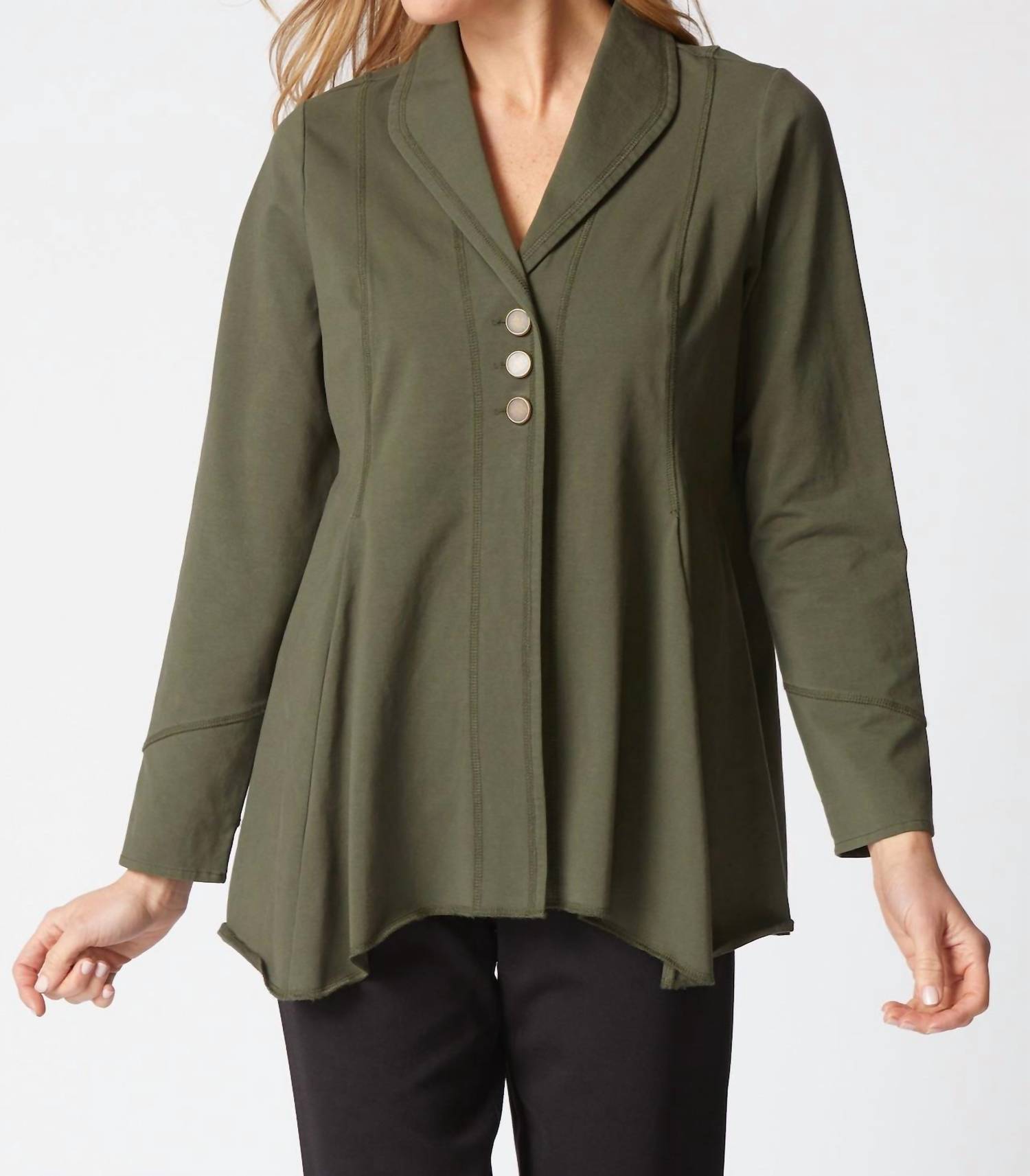A casual yet cool jacket that every closset needs. Introducing the Stonewash Cotton Swing Back Jacket by Habitat, a sophisticated yet comfortable piece crafted for both style and versatility. This women's jacket features a unique swing-back design and long sleeves, ensuring graceful movement and a polished appearance. Made from a cotton blend (92% Cotton, 8% Spandex) in a rich Forest color, it's ideal for travel and casual settings alike. The button closure adds to its timeless appeal, while care is made easy with machine wash and tumble dry instructions.