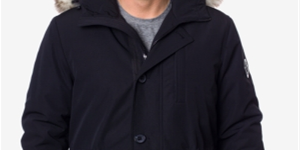 Ask a question about Halifax Men's Faux Fur TrimJacket Blue Size XXL