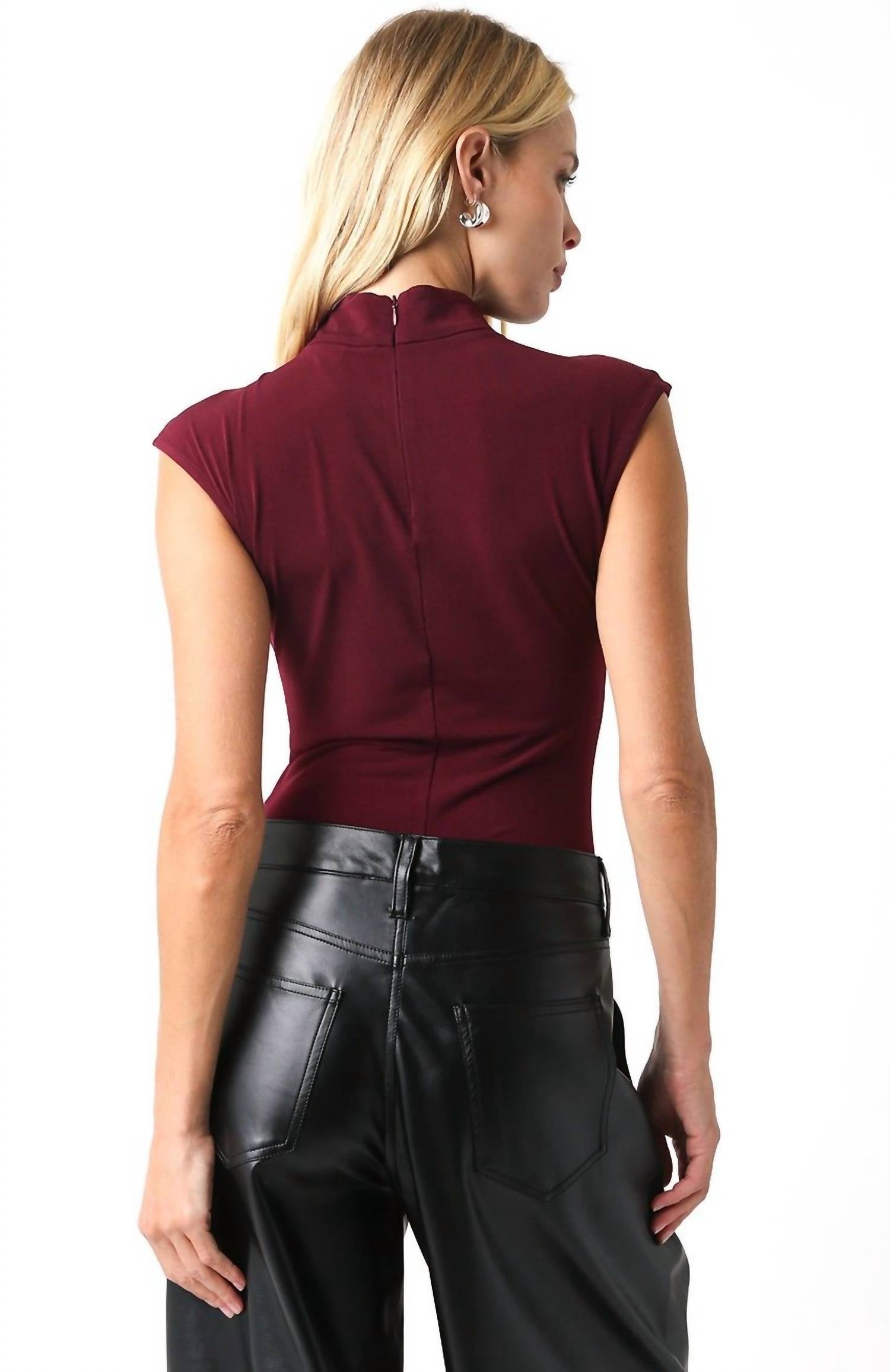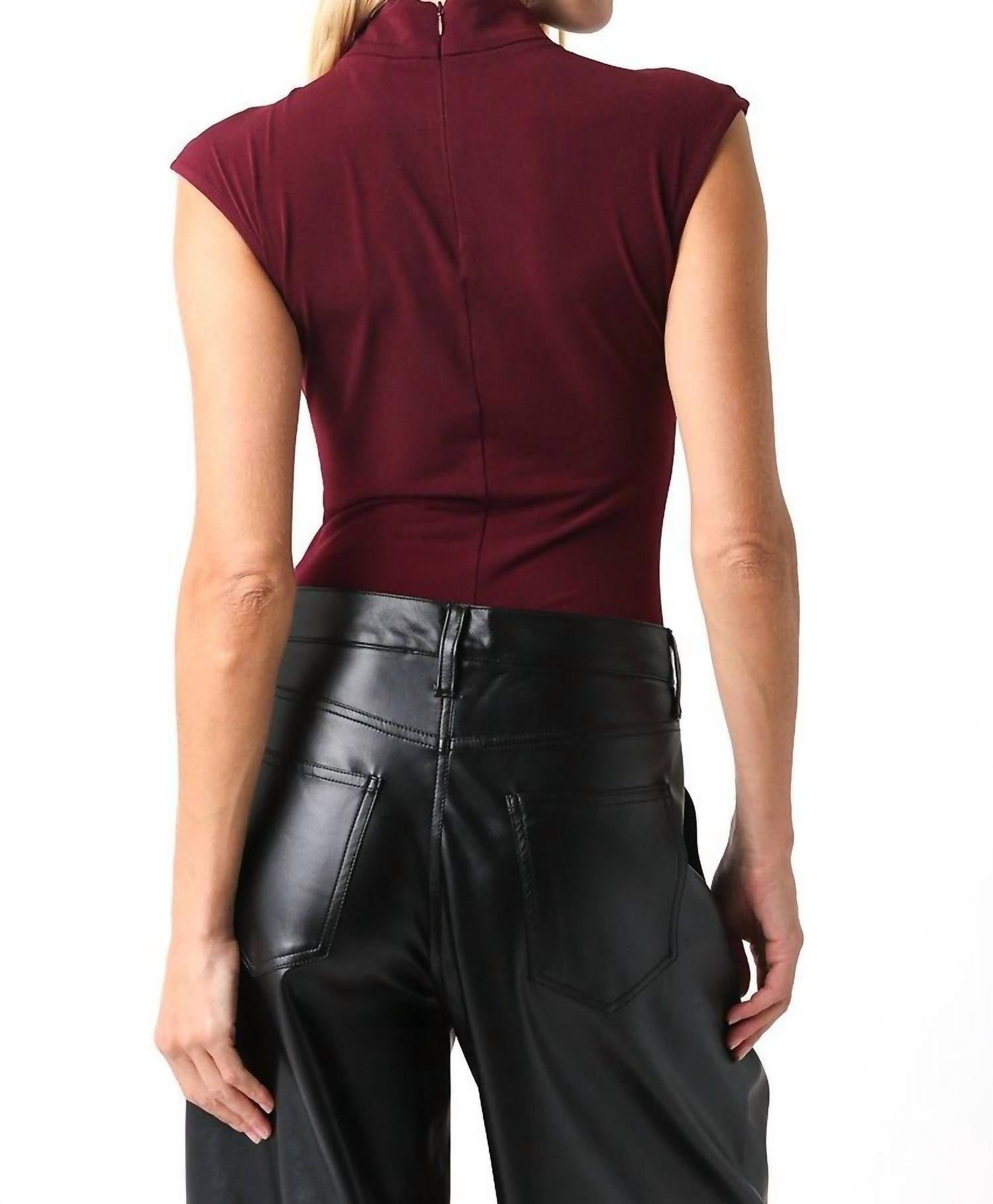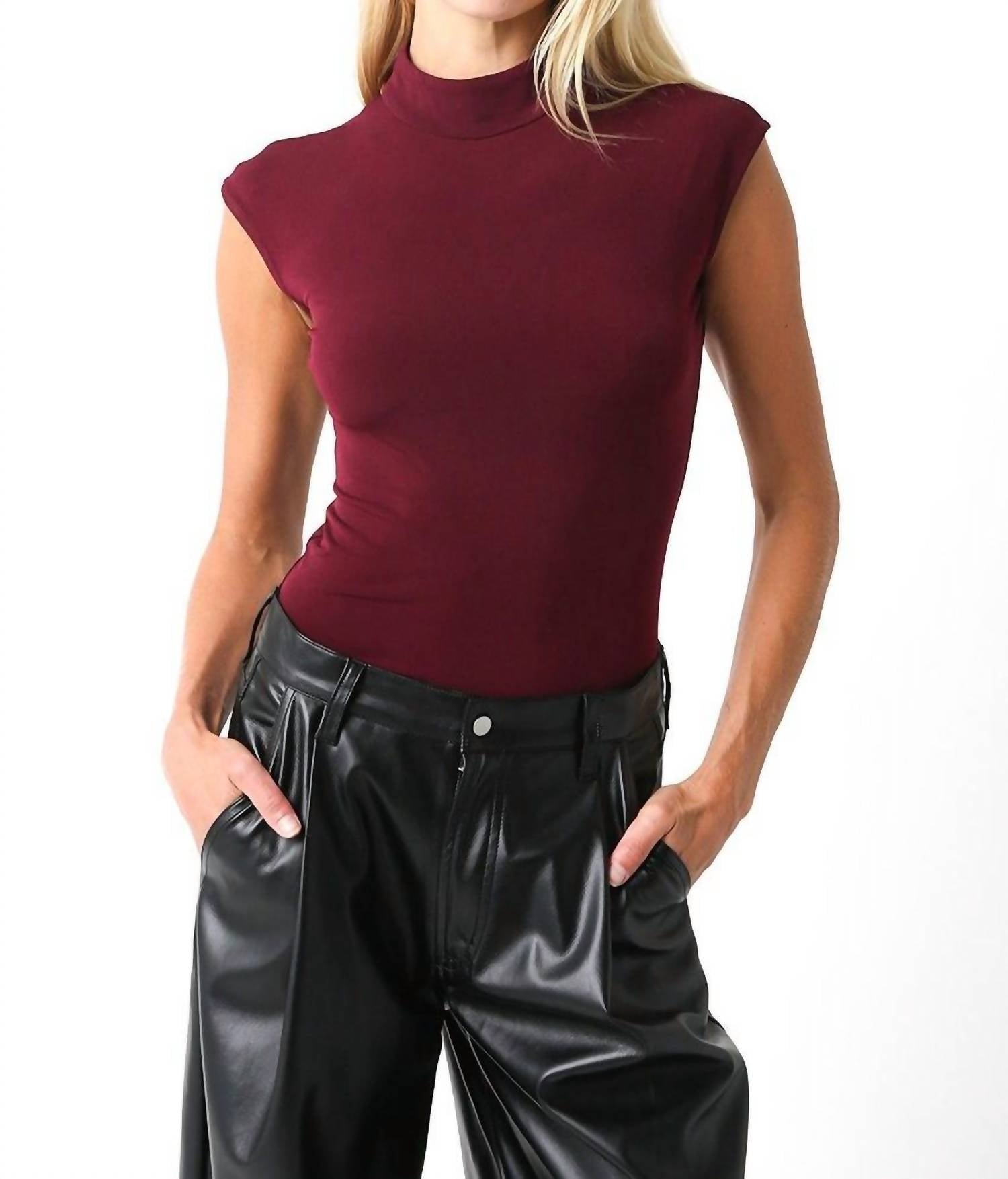 Pair this with your favorite jeans and slides for your next girls night out. Introducing the Sweet Sangria Top by Hallelu, a chic maroon bodysuit perfect for any holiday party or Valentine's Day event. This sleeveless piece features a stylish mockneck and is crafted from soft knit fabric. The solid pattern keeps it versatile, making it a must-have in your spring wardrobe. It comes with a zip closure, ensuring a snug fit for any occasion.