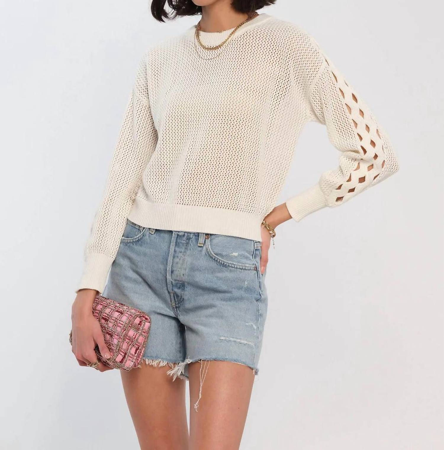 Stay warm and stylish in this versatile and effortlessly cool knitwear staple. Wear it alone or layered, it's the perfect sweater for the season and you'll wish you had it in every color. Introducing the Avila Sweater by Heartloom, a charming staple for your spring wardrobe. This women's textured sweater features long sleeves and a classic crewneck design, crafted from cotton yarn for comfort during vacation nights. The open stitch body, coupled with a ricrac-inspired trim, adds unique style elements to its eggshell hue. Designed without pockets, it offers a relaxed fit perfect for versatile wear.