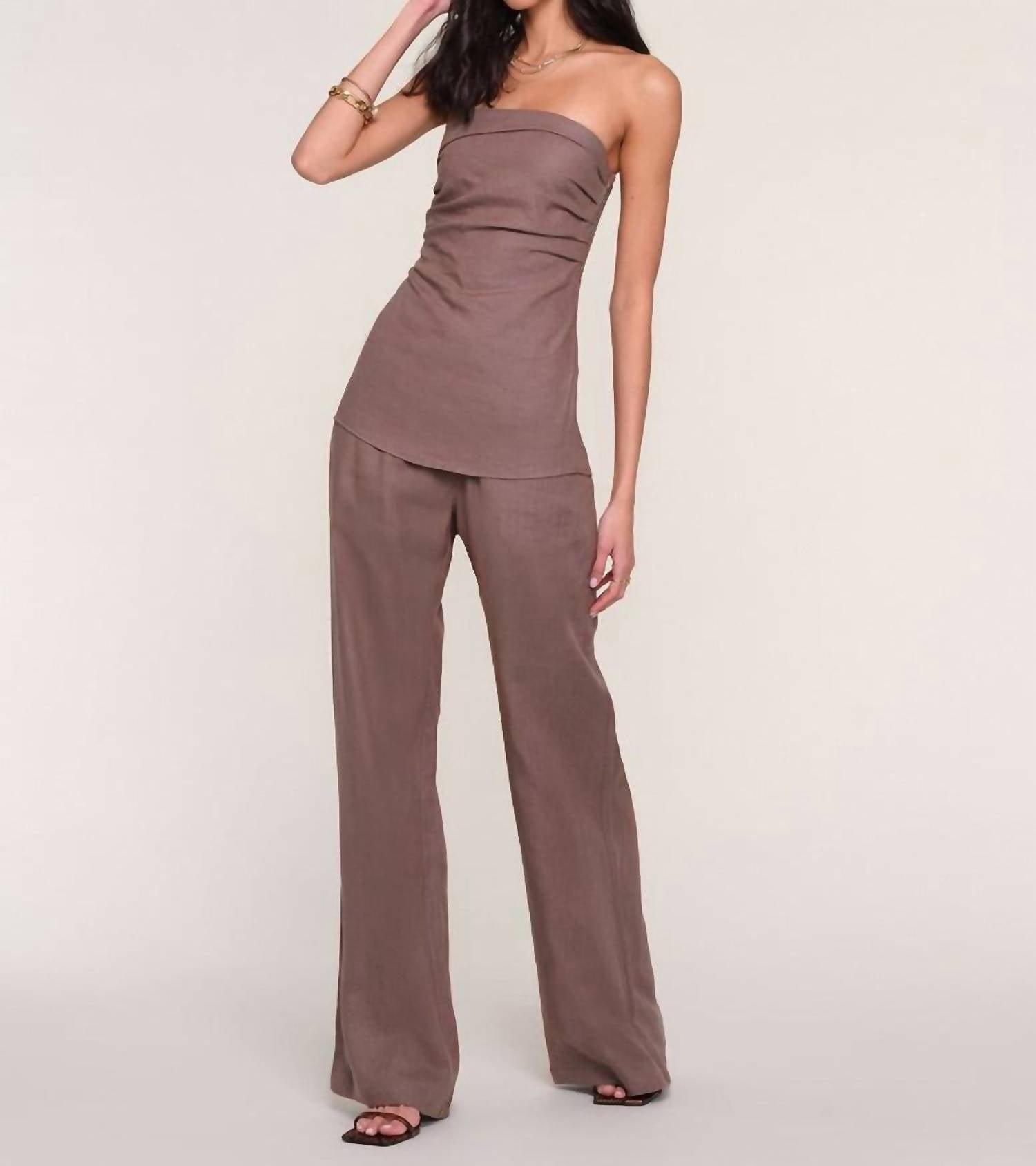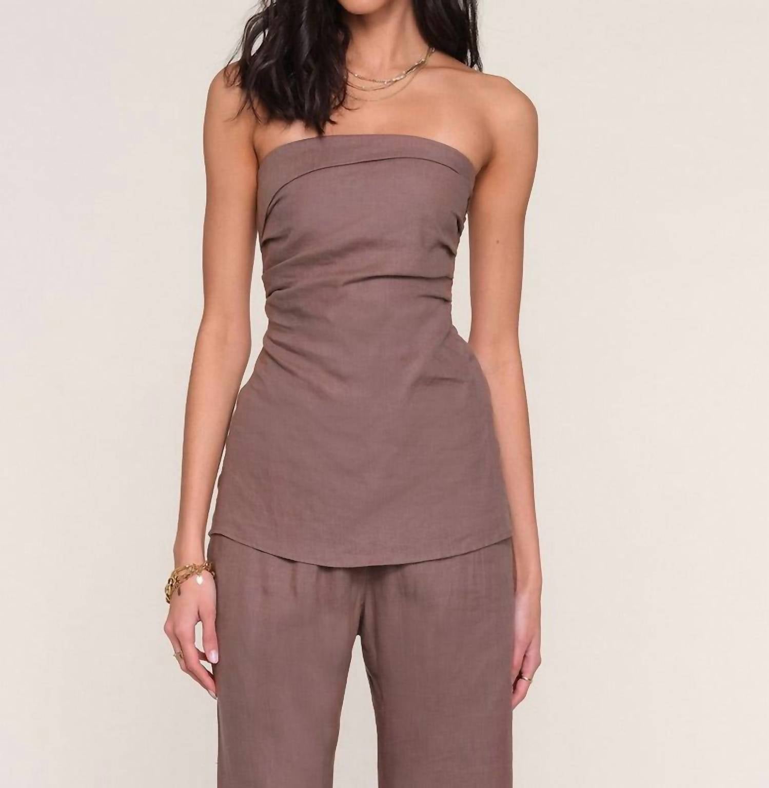 Pair this with your favorite jeans and slides for your next girls night out. Meet the Corinne Top by Heartloom, a strapless linen blouse exuding elegance with its pleat details at the side seam. Crafted from 100% Linen, this solid Driftwood piece offers a flattering silhouette with smocking at the back and a convenient side zipper closure. The top measures 20.5" from the high point of the shoulder, making it perfect for summer dinner parties. For care, hand wash and follow with a tumble dry.