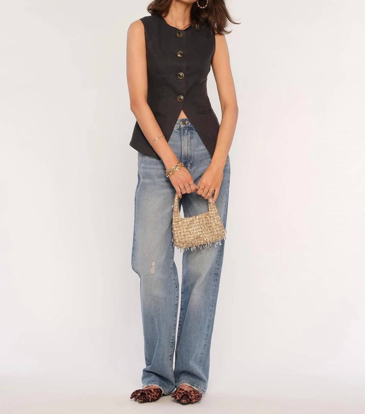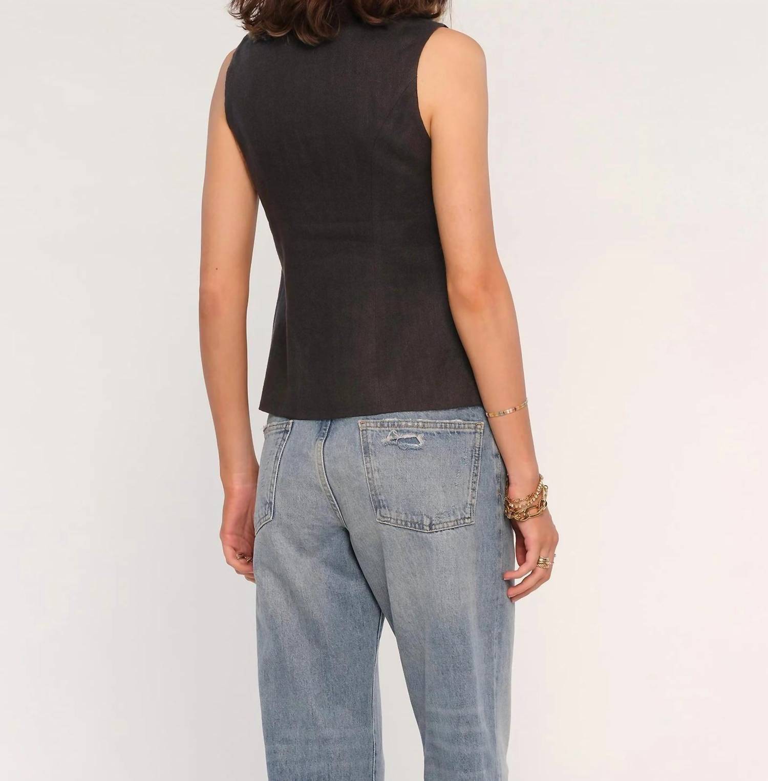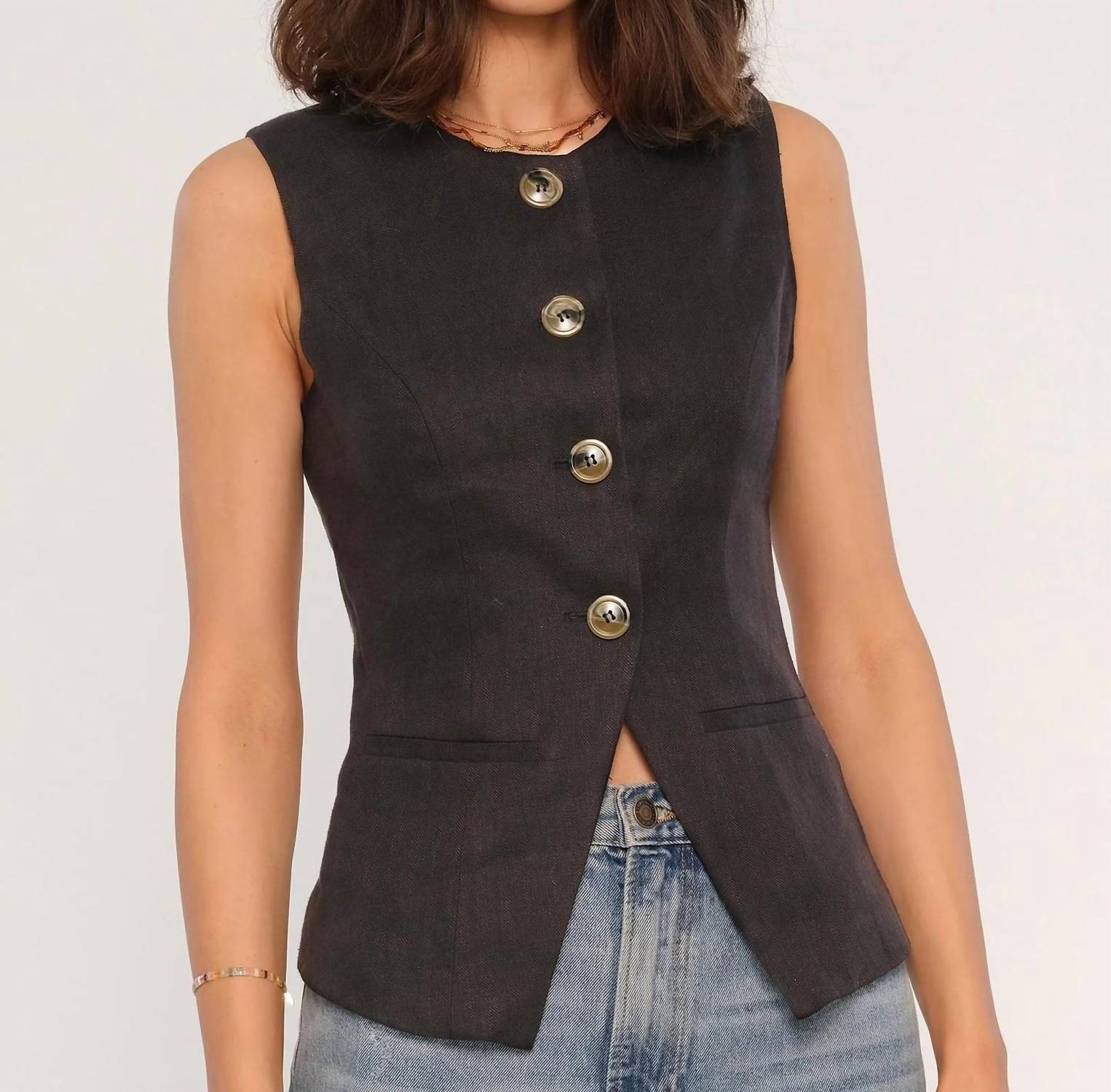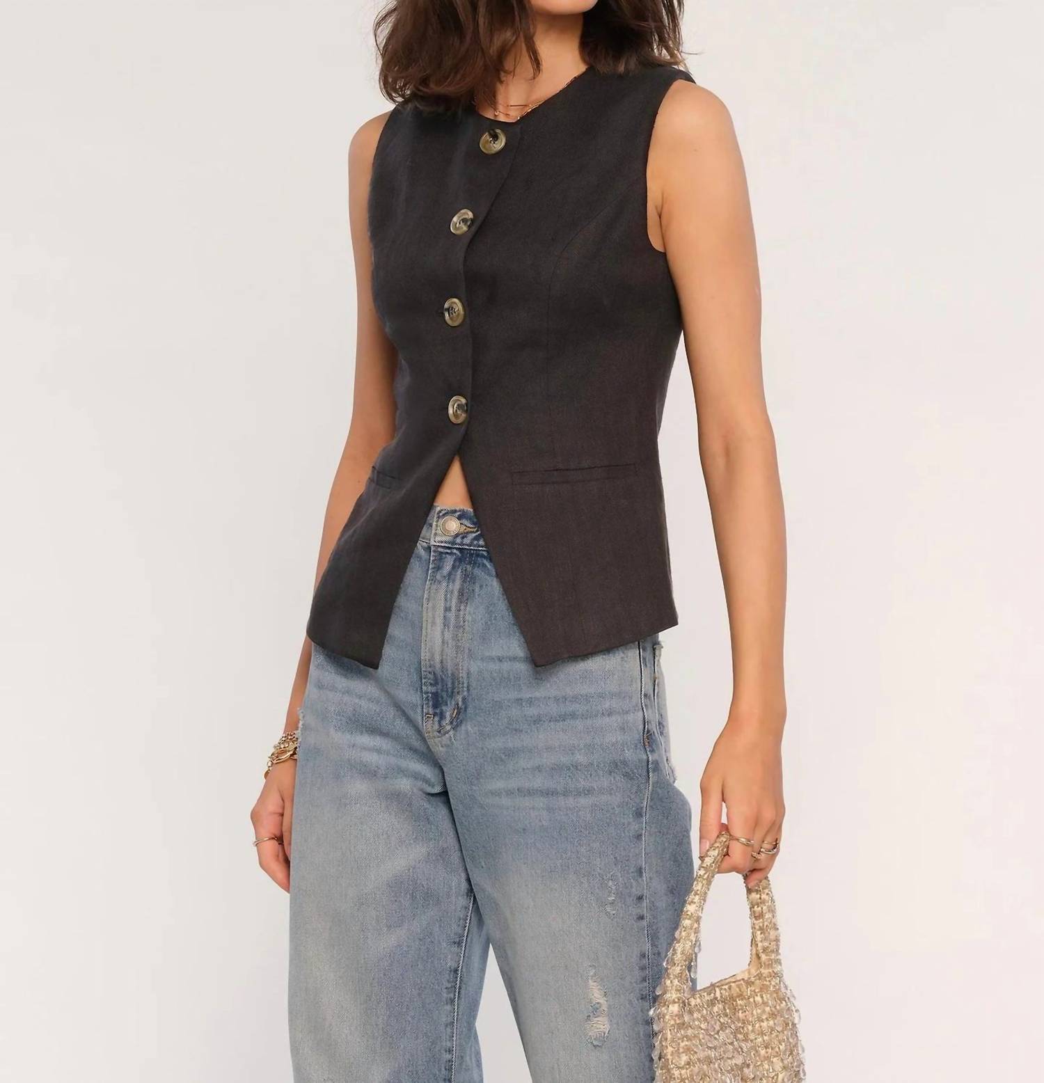 Cooler temps call for layering and we love this adorable sweatshirt for all the obvious reasons. Elevate your minimalist wardrobe with the Emerson Vest by Heartloom, crafted from 100% linen for a cool and soft feel. Designed with a crew neck, this sleeveless vest showcases a pinched waist and thoughtful novelty buttons, perfect for a dinner party. Closure: Button closure. Care: Dry clean only. Model is wearing a size small, and the item runs true to size with a slim fit.