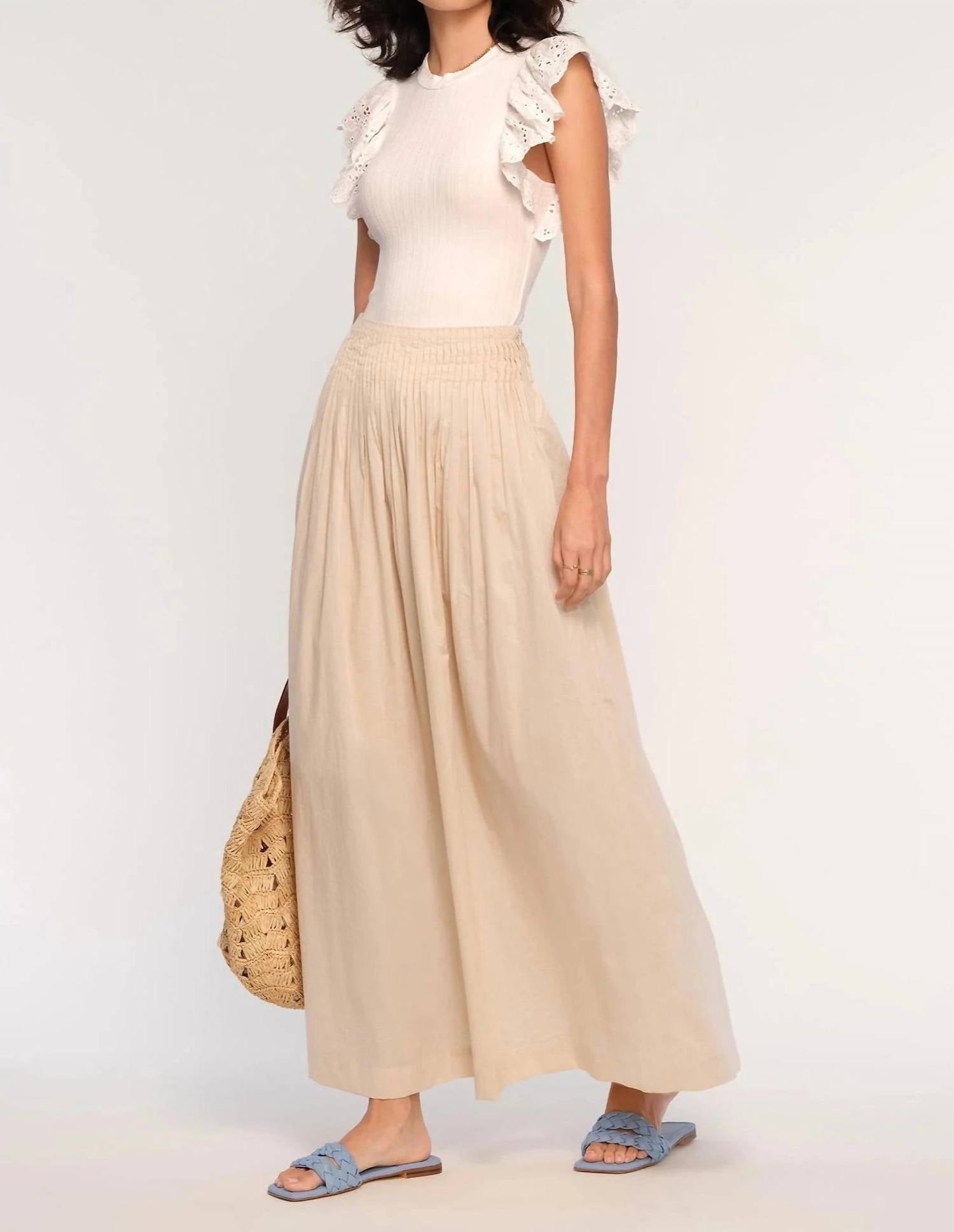 Who doesn't love a good maxi skirt? Introducing the Heartloom Renee Maxi Skirt, a lightweight maxi in a natural hue, ideal for a breezy summer look. Crafted from 100% washed cotton voile, this skirt features a delicate pintuck detail adding texture and elegance. Closure: Side zipper. Perfect for vacation or boho chic occasions.