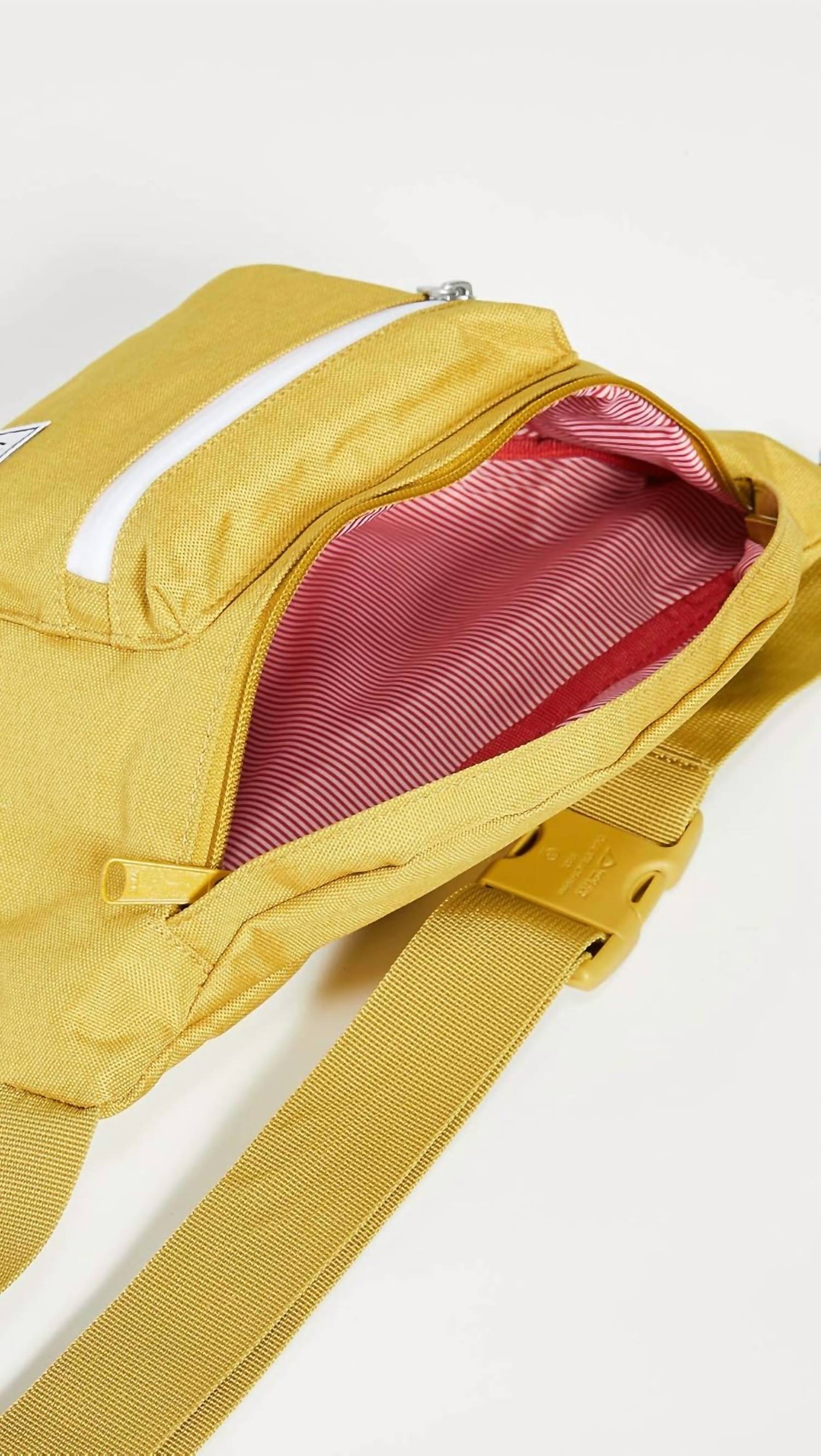 Introducing the Seventeen Good Poly Smu Waist Pack by Herschel, designed for both style and practicality in a striking Arrwd color. This versatile bag features a signature striped fabric liner, a classic woven label, and a waterproof zipper for the front storage pocket, complete with a key clip. It comes with a clip fastened adjustable webbing strap, allowing you to wear it around the waist or over the shoulder. Enjoy the ample main compartment that makes it perfect for everyday use.