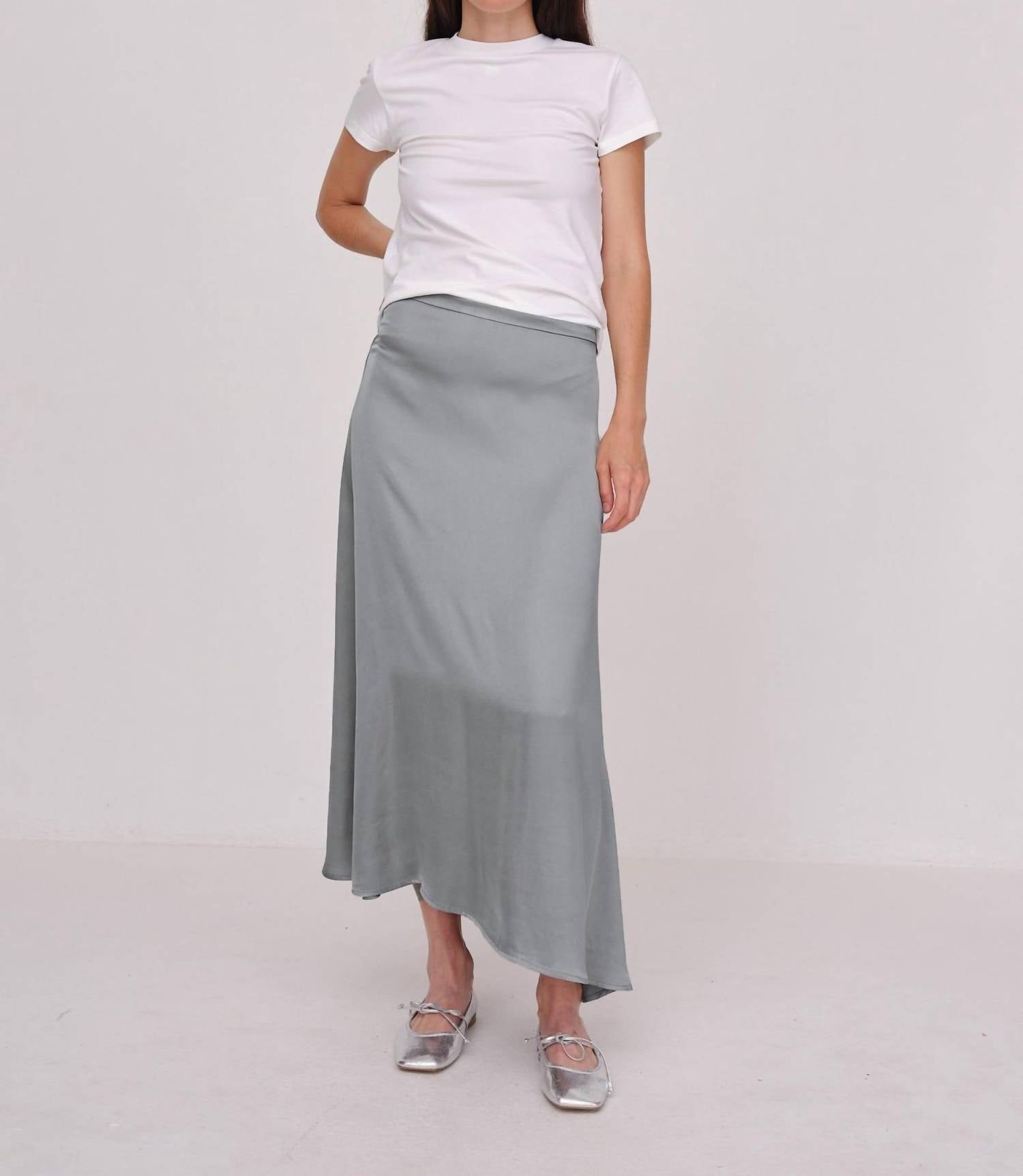 This asymmetric long skirt features a flowing silhouette with a modern edge. Designed with a subtle drape and finished with a back zipper for easy wear, it's made from a blend of certified viscose and rayon for a lightweight, comfortable feel.