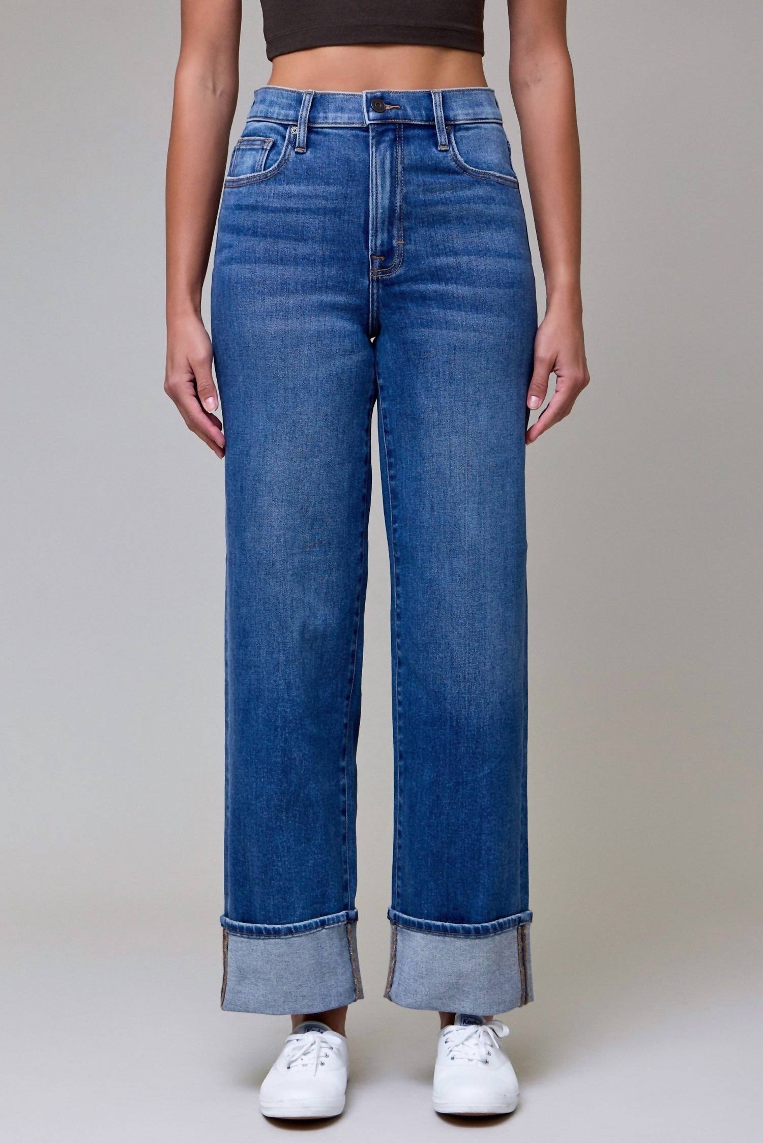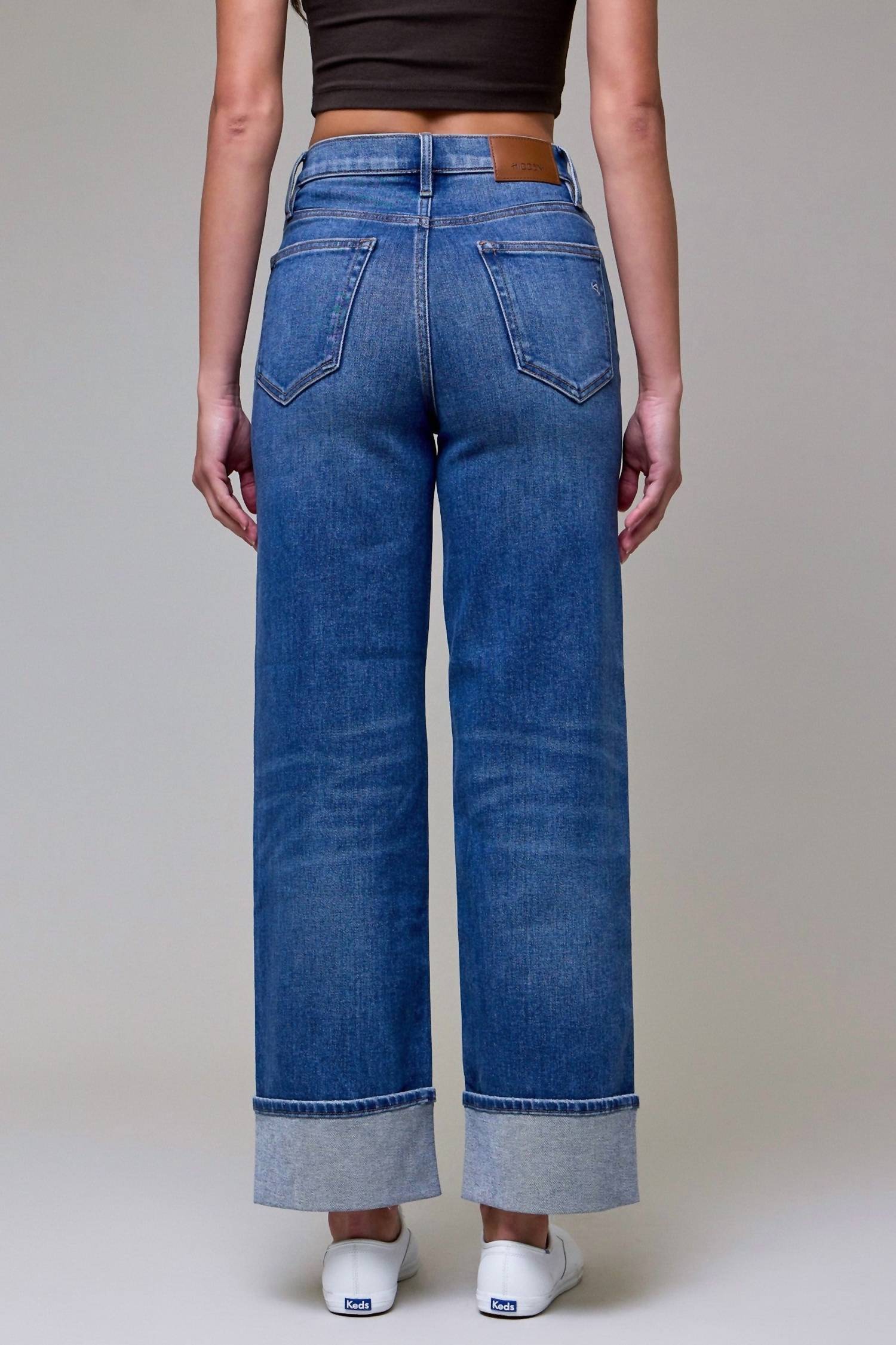 Tuck your favorite tee into these high-waist jeans for a more casual-cool feel. Step into effortless style with the Valery High Rise Dad Jeans by HIDDEN, perfect for versatile spring outings. These relaxed-fit, wide-leg jeans come in a classic blue with a high-rise span of 11.5 inches and a 30-inch inseam. Made from a stretchy cotton blend (93% Cotton, 5% Polyester, 2% Spandex), they offer flexibility and comfort with a polished, solid dark wash finish. Featuring a button closure and practical pockets, these jeans are machine washable and can be tumble dried for convenient care.