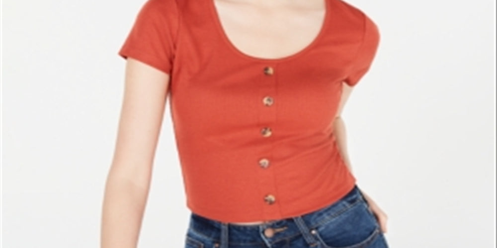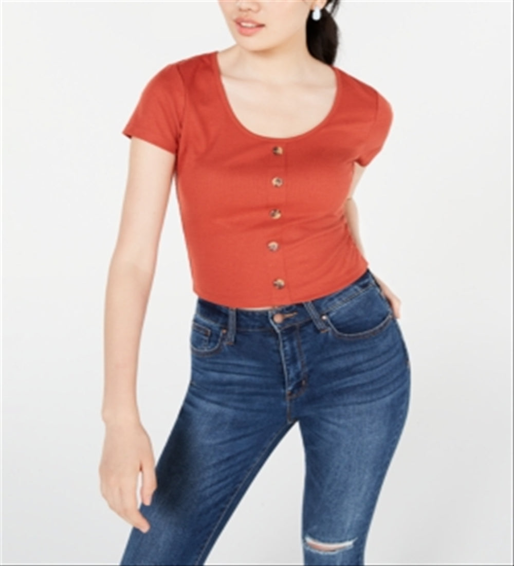 Hippie Rose Junior's Button Front Rib Knit T-Shirt Brown Size X-Small