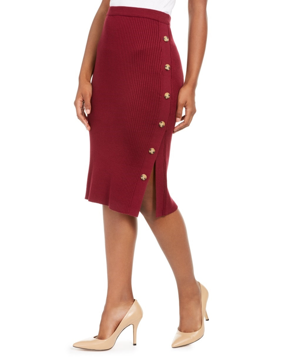 Pull-on style with faux buttons at front sideSlit at front hemUnlinedRayon/polyesterHand wash