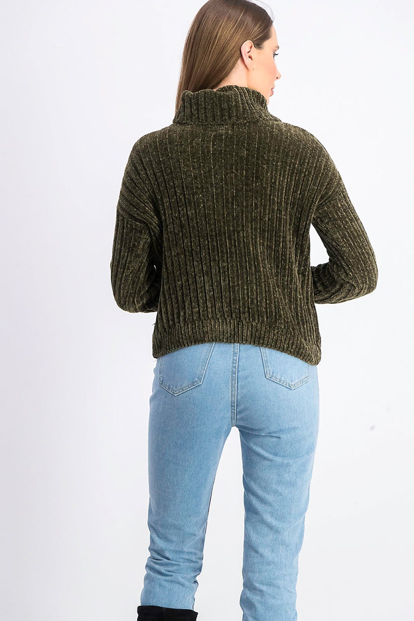 Hippie Rose Juniors' Chenille Turtleneck Sweater Dark Green Size X-Small