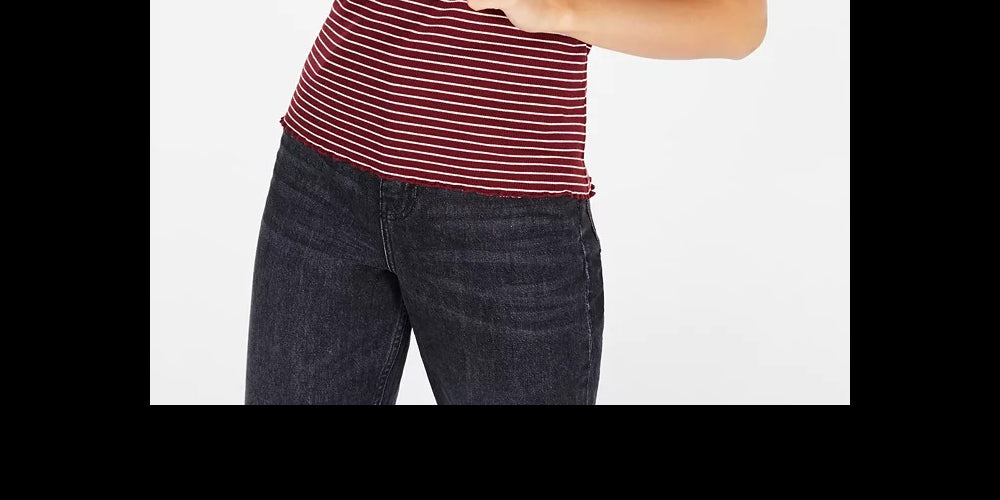 Fitted; hits at hip|Crewneck with lace-up ties|Rib knit; lettuce edge at sleeves and hem|Runs small, we suggest sizing up for the perfect fit|Polyester/rayon/spandex|Machine washable