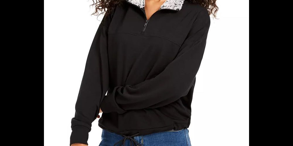 Hippie Rose Juniors' Sherpa Lined Quarter-Zip Sweatshirt Black Size Extra Large