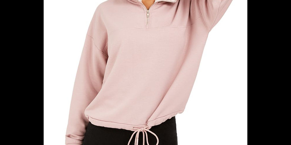 This soft quarter zip sweatshirt from Hippie Rose is the perfect cozy layer for your cool weather athleisure look. The fresh| modern design helps keep you warm with cuffed sleeves| a drawstring waist| and sherpa lining on the collar.| High neck collar; quarter-zip closure at front| Hits at waist; bungee cord tie detail at waist