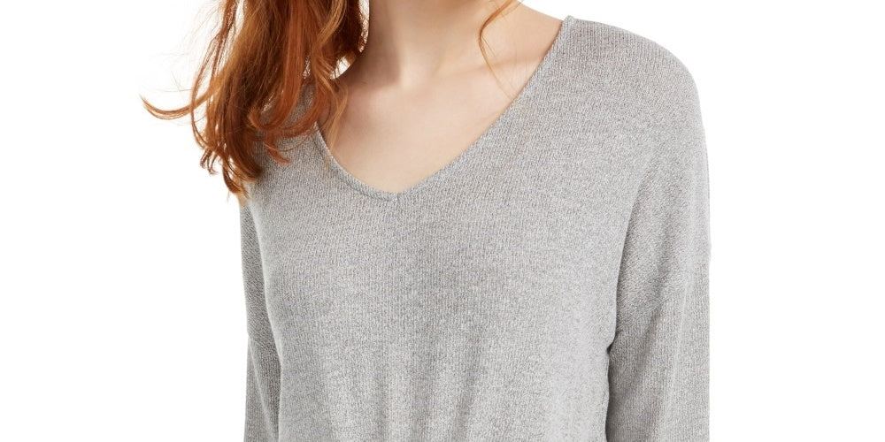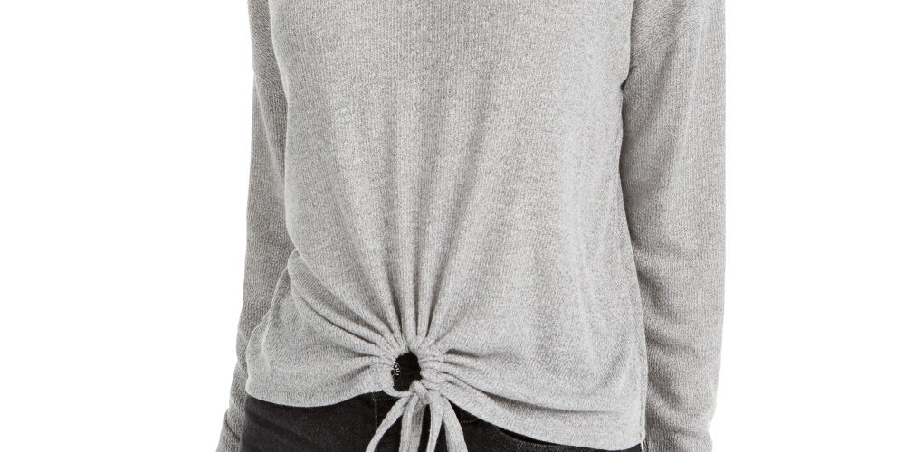 Hippie Rose Junior's Tie Hem V Neck Top Grey Size Large