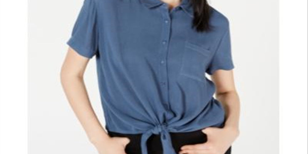 Hippie Rose Women's Collared Blouse Top Blue Size X-Large