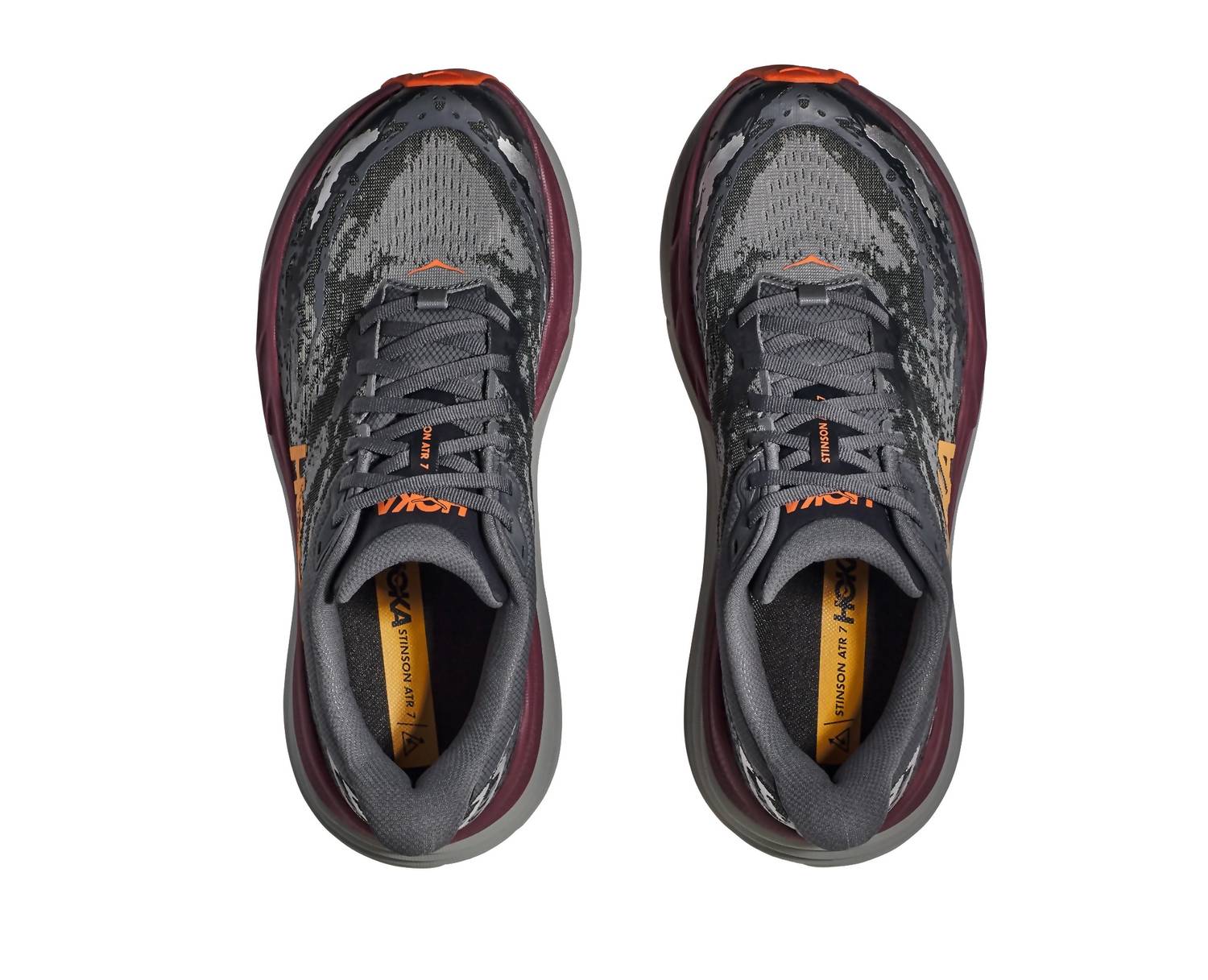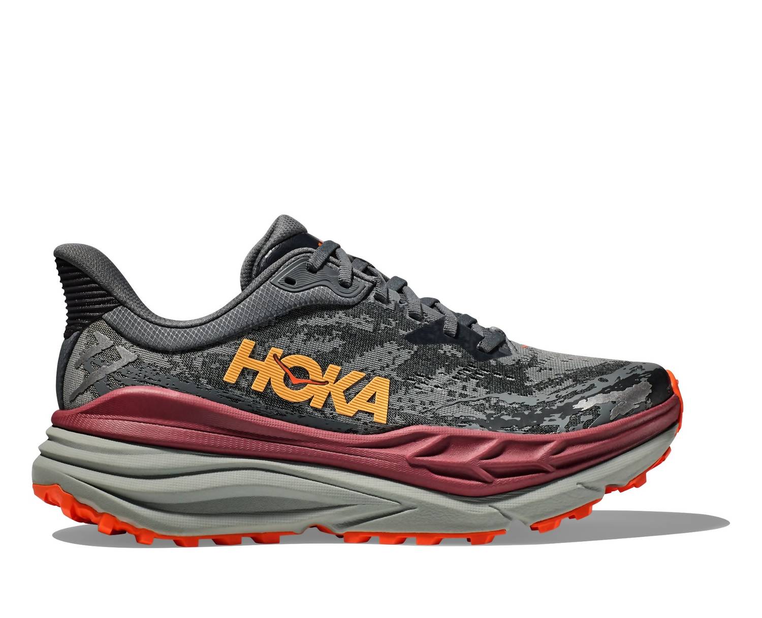 For those seeking the ultimate in versatile performance footwear, the Men's Stinson V7 Hiking Trail Sneakers by Hoka are the perfect solution. Designed with engineered jacquard mesh and a durable rubber toe cap, these sneakers boast remarkable road-to-trail agility and plush cushioning. Originating from the renowned Stinson series, they feature a stabilizing H-Frame™, a deep active foot frame, and multi-directional lugs that provide exceptional traction across diverse terrains. Ideal for hiking and all-terrain runs, these grey sneakers cater to the athleisure trend, making them a stylish choice for your spring adventures.