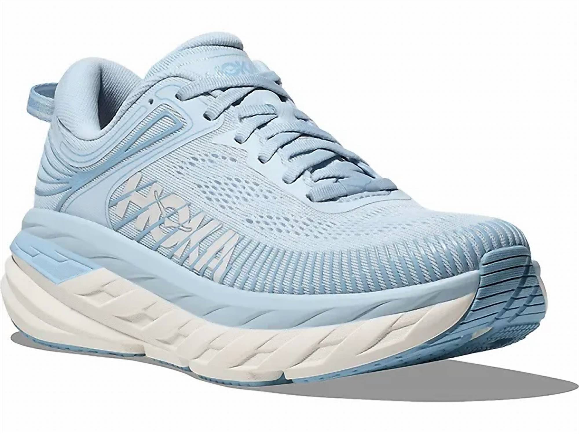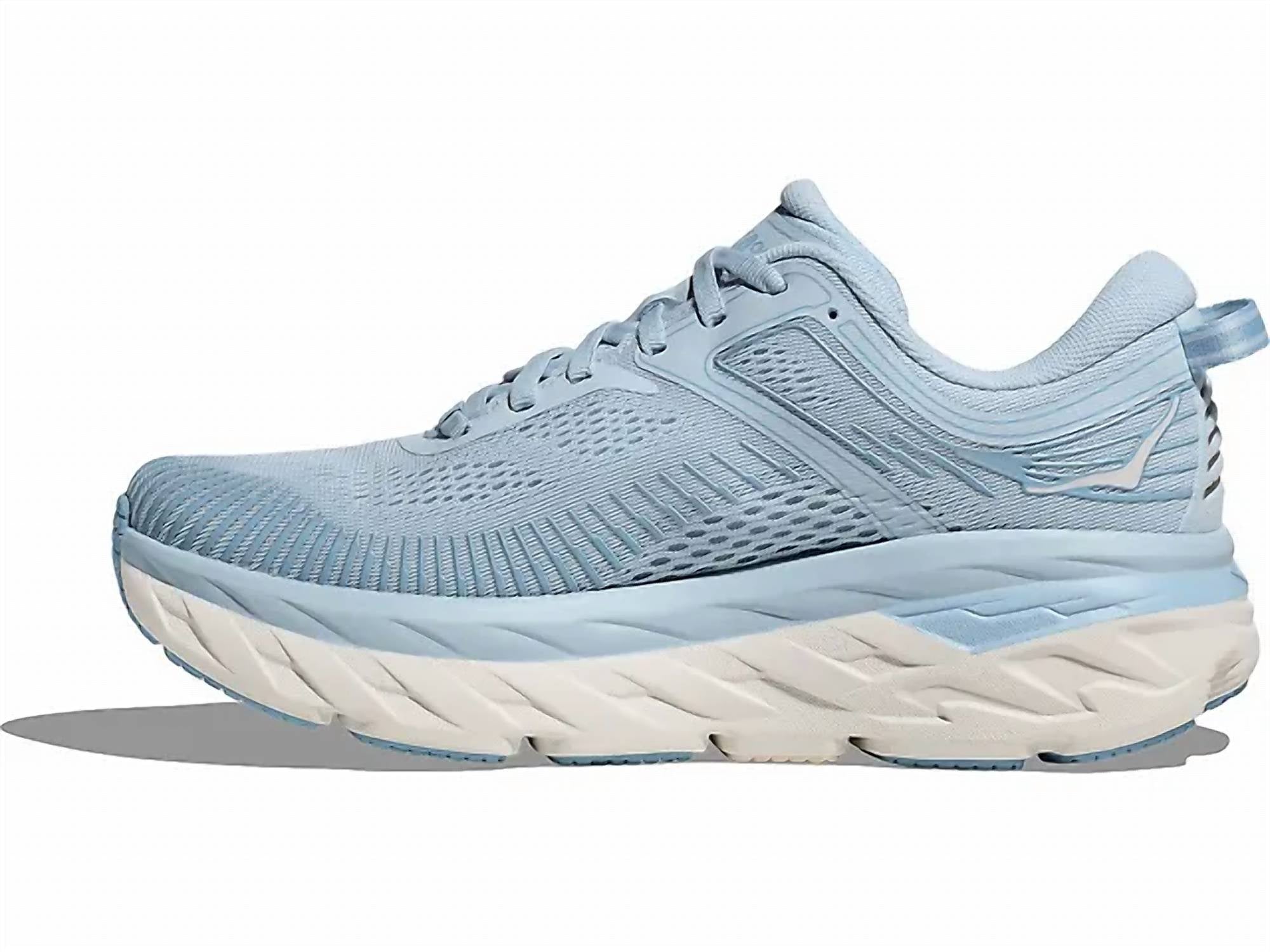 The most cushioned HOKA road shoe available, the Bondi 7 delivers a smooth and balanced ride. Engineered with the same full EVA midsole, breathable mesh upper and signature Meta-Rocker technology as its predecessor, the Bondi 7 is updated with a plush collar designed to accommodate a narrower heel - and conform to a wide variety of ankles.