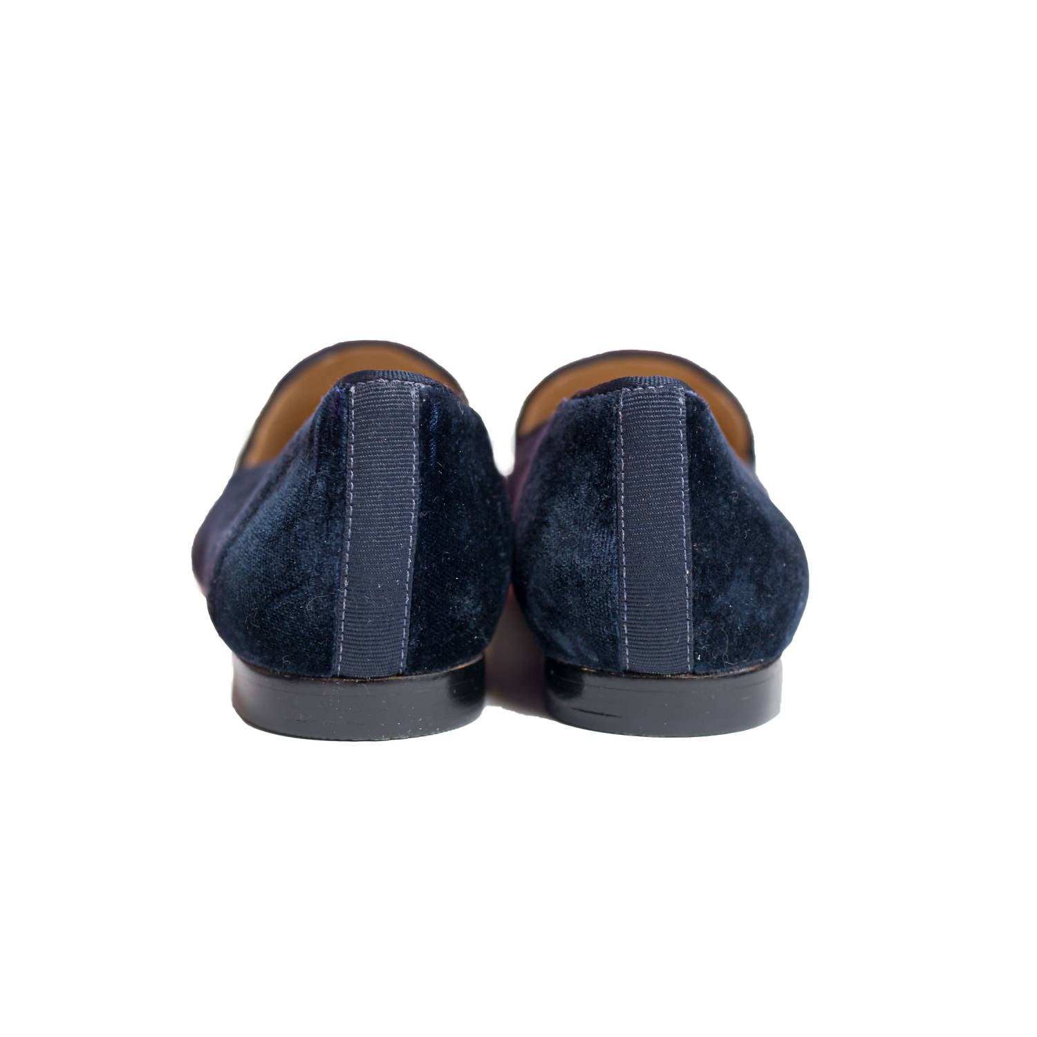 .75 inch Leather Stack Heel. Sagittarius slipper features rich Sapphire Italian Cotton-Velvet with matching grosgrain trim and our Zodiac themed. Sagittarius embroidery. Napa Leather Lining for additional support and comfort. Leather Sole. Velvet treated to be water repellant