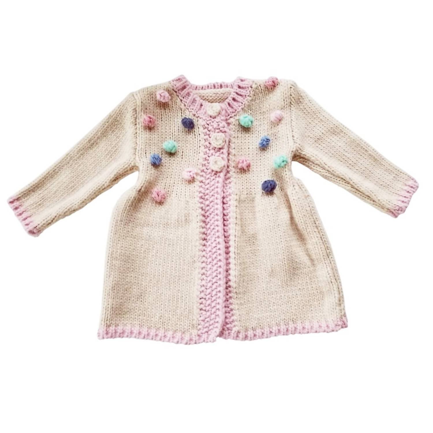 Huggalugs - Baby Girls Popcorn And Pompom Sweater