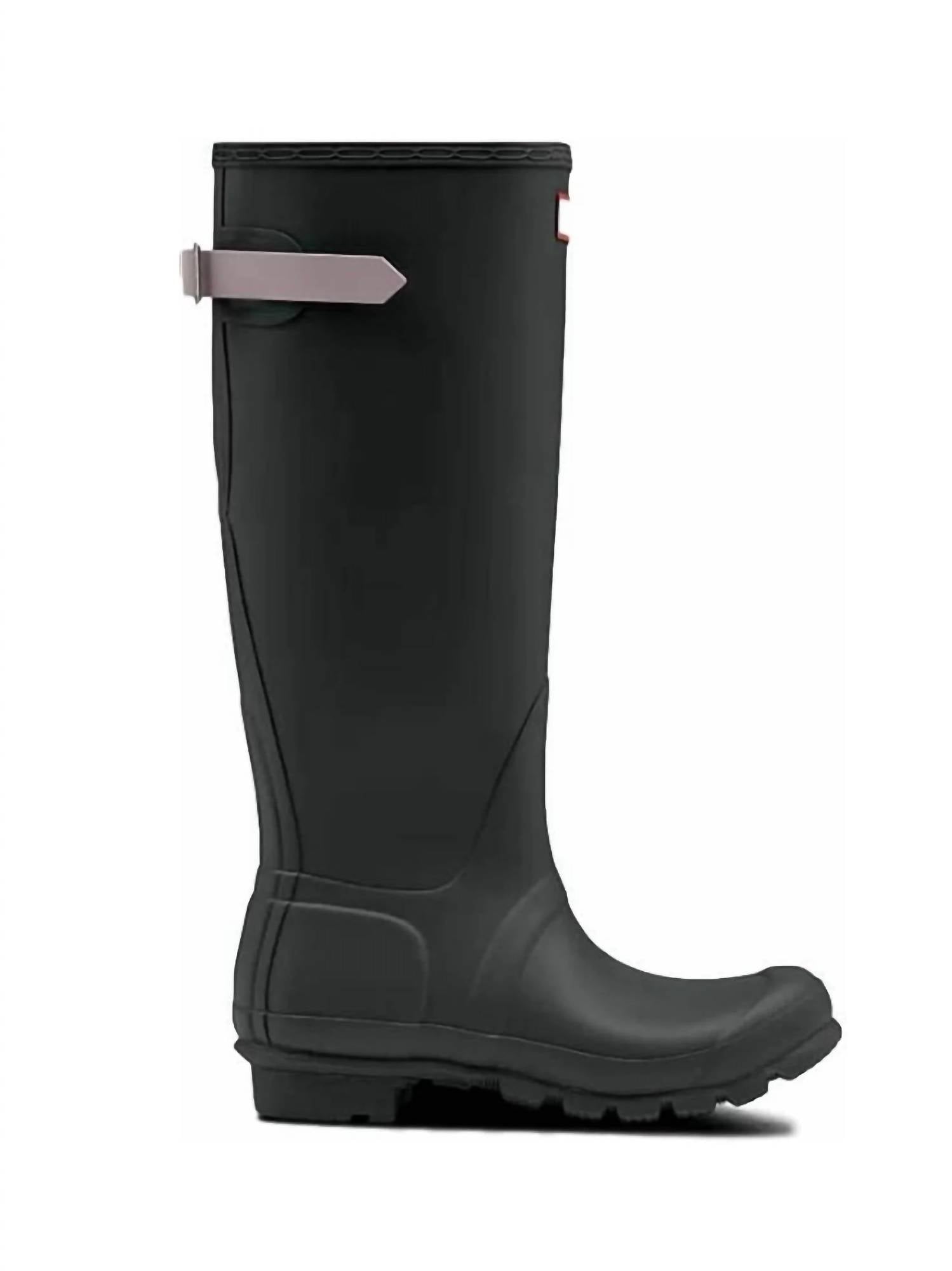 Rainboots so cute, you'll want to wear these even on the lightest drizzle days. Step into style with the Women's Original Back Adjustable Rain Boots by HUNTER, perfect for wet weather conditions. These boots boast a durable rubber material and a round toe shape for comfortable wear. Designed for women, they come in a striking Firth/Atlantis color, adding a splash of color to gray days. Ideal for adult fashionistas looking to combine practicality with chic, all-weather footwear.