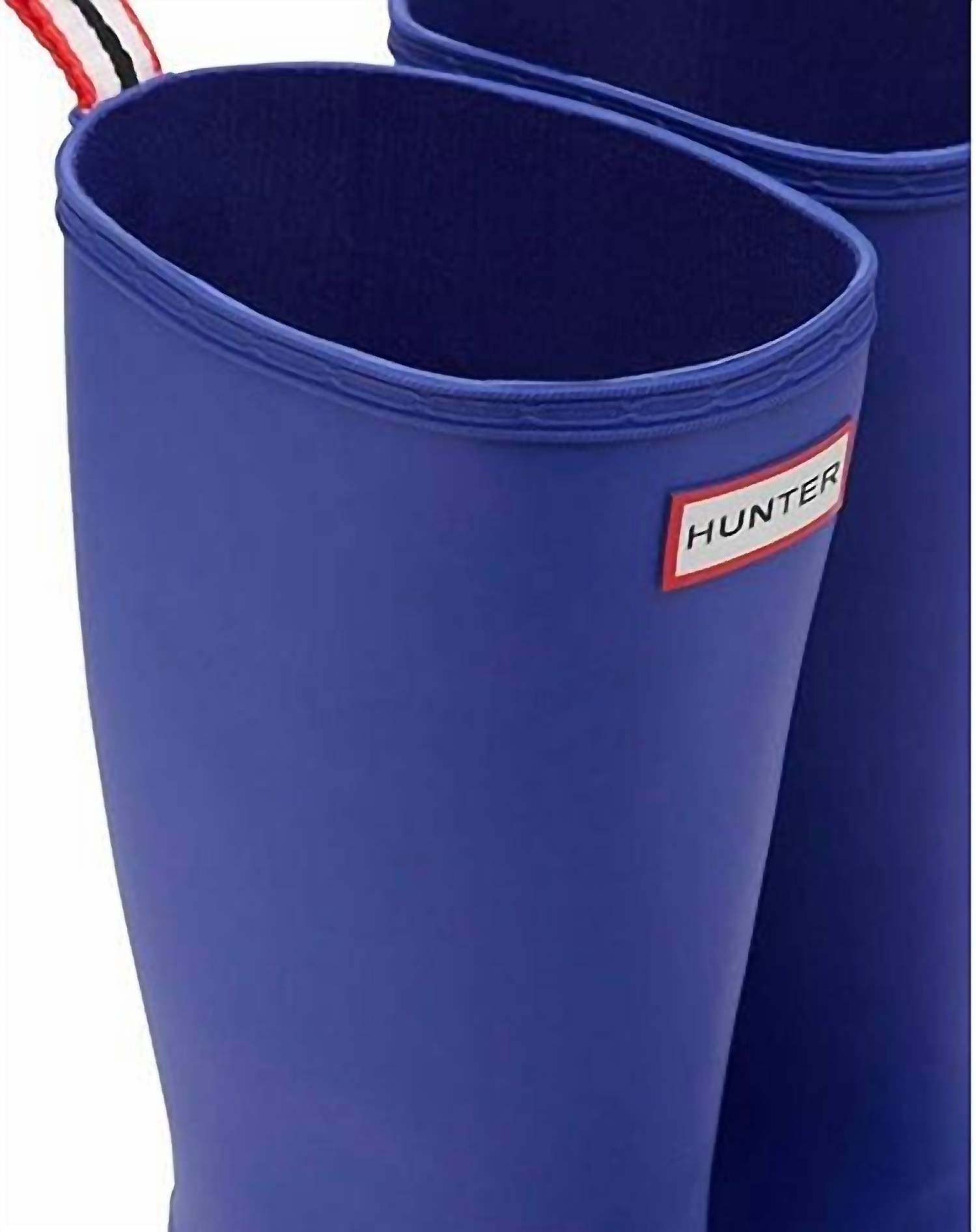 Rainboots so cute, you'll want to wear these even on the lightest drizzle days. Introducing the HUNTER Women's Boot in Electric Storm, a vibrant addition to any winter wardrobe. Crafted from durable rubber, these winter and rain boots boast a practical round toe shape. Designed specifically for adult women, they promise both style and function during the colder months. Elevate rainy day ensembles with their striking electric hue.