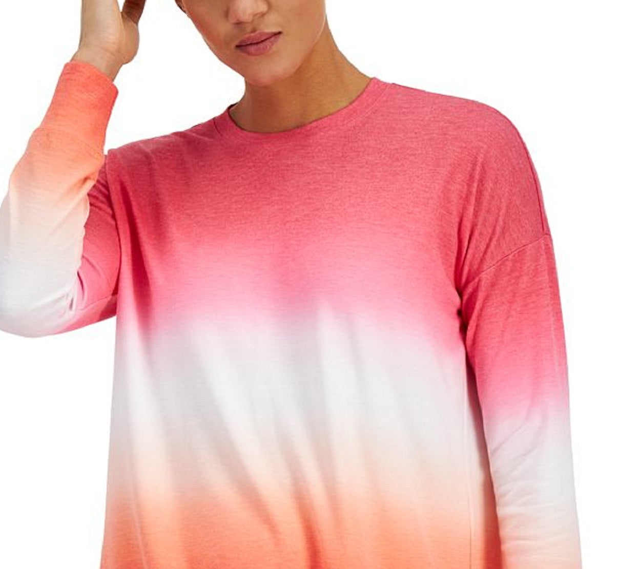 ID Ideology Women's Dip Dye Crewneck Top Orange Size Large