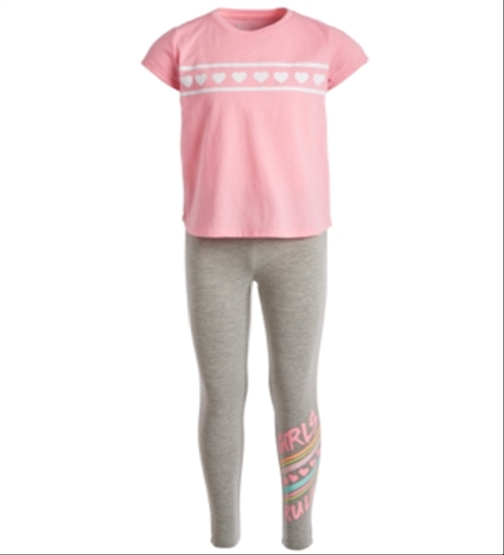 Ideology Toddler Girl's 2 Pc T-Shirt & Leggings Set Heart Stripe Pink Size 4T