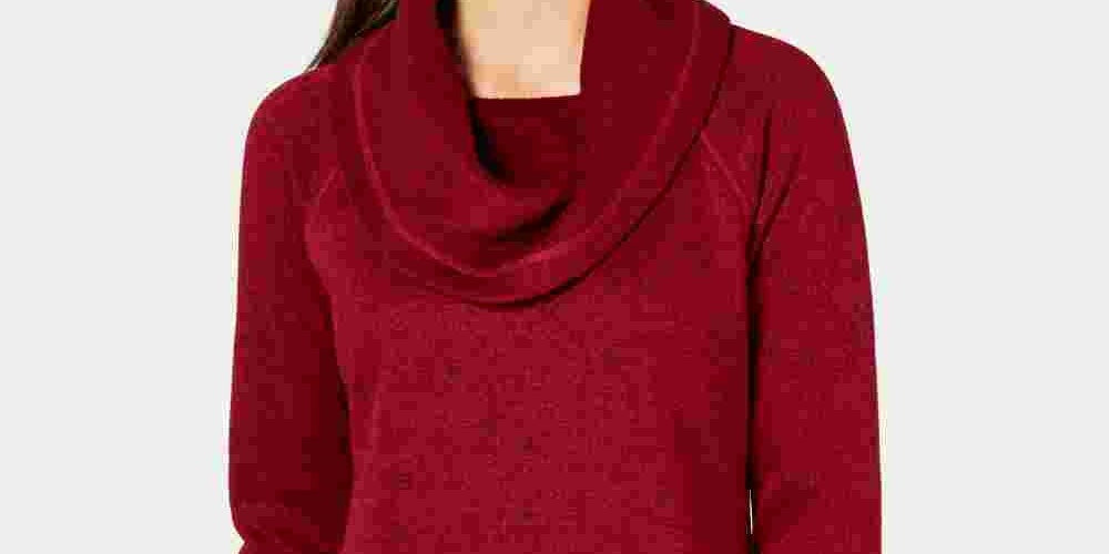 Ideology Women's Cowl Neck Fleece Pullover Sweater Red Size X-Small