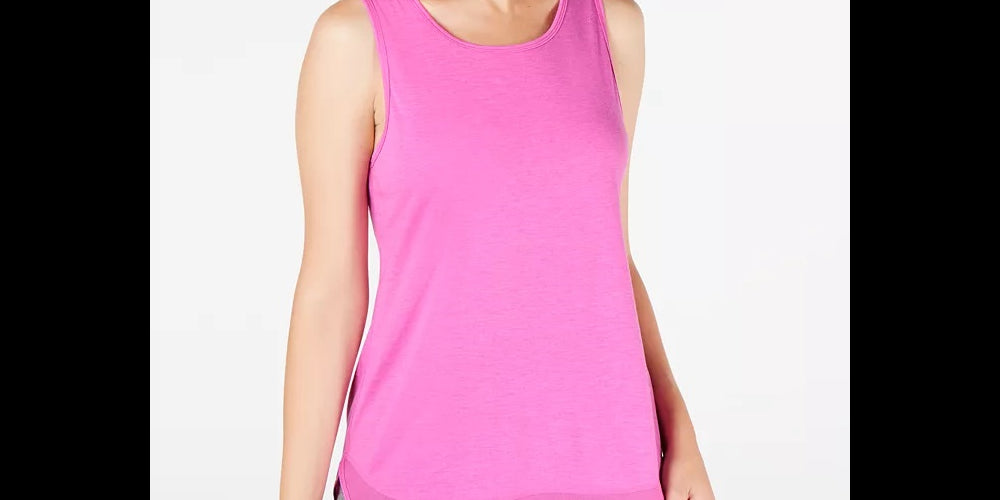 Hits at hip; semi-fitted; rounded hem with mesh|INSPIRED FOR; Workout/training|Wicking technology helps evaporate moisture|Scoop neckline|Polyester/rayon; mesh; polyester