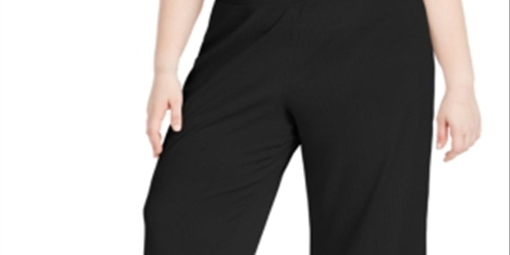 Ideology Women's Plus Ribbed Culottes Black Size 3X