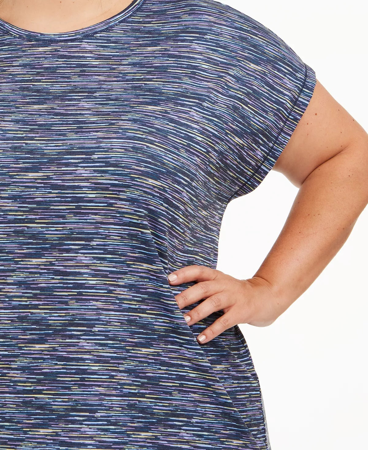 Crewneck|Stitched detail at neckline and sleeves|Dolman short sleeves|Polyester/lyocell/spandex