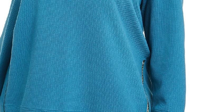 Crewneck | Allover texture; zippers at side hem | Polyester/rayon/spandex