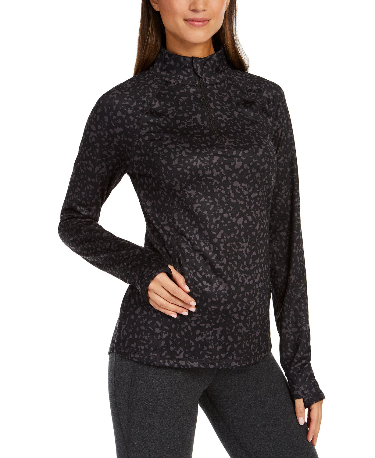 Ideology Women's Printed Quarter-Zip Black Size Extra Small