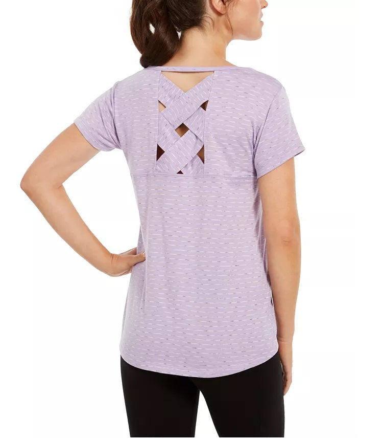 Semi-fitted; lattice detail at back|INSPIRED FOR: Yoga/athleisure|Scoop neckline|Polyester/rayon/spandex|Machine washable