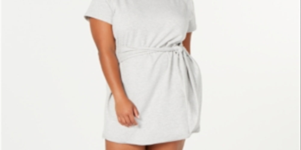 Ideology Women's Tie Front T-Shirt Dress Gray Size 1X