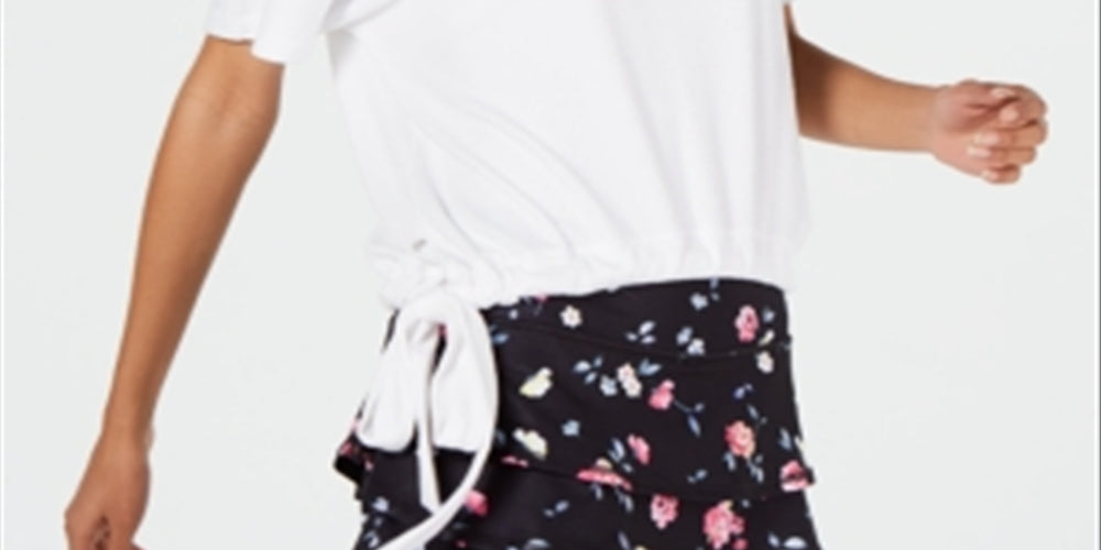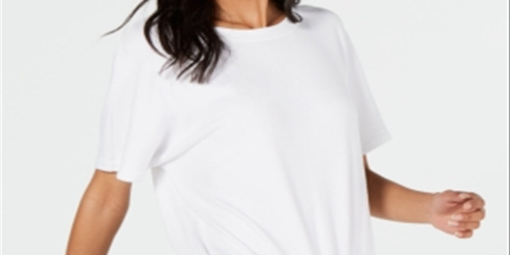 Ideology Women's Tie Hem Ribbed Shirts & TopsWhiteSize M