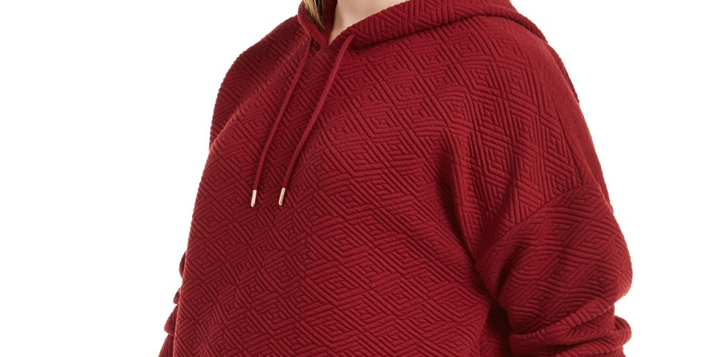 Ideology Women's Zippered Herringbone Long Sleeve Hoodie Sweater Red Size 1X